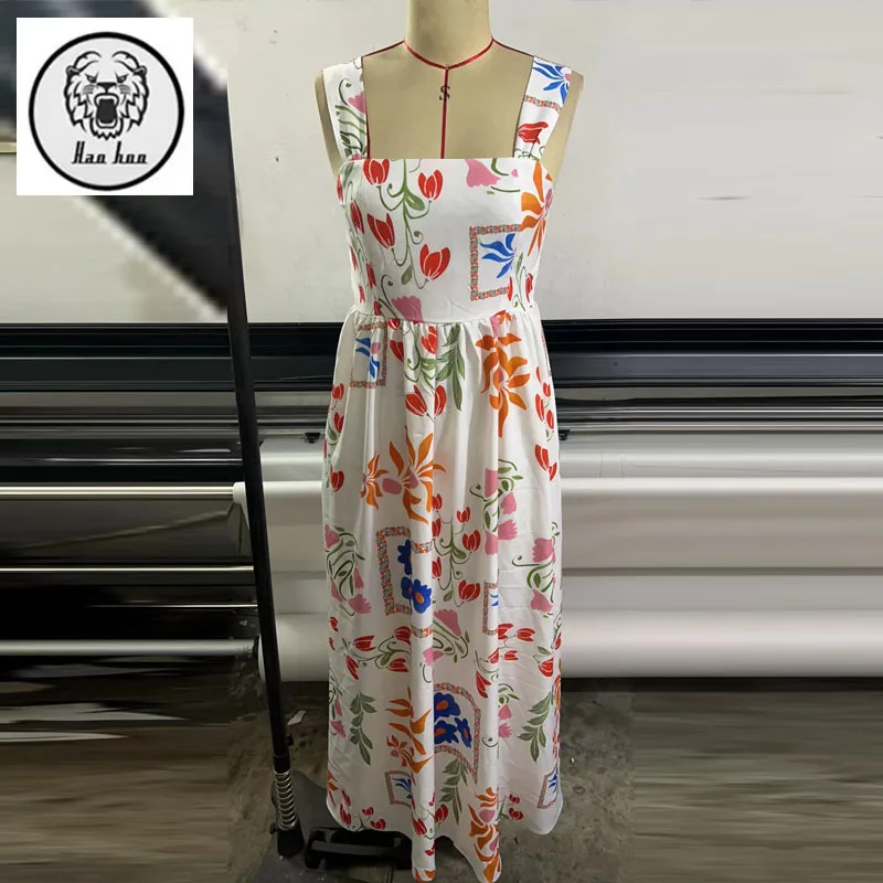 High Quality Fashionable Summer Square Neck Floral Printing Women Casual Clothes Summer Maxi Dresses
