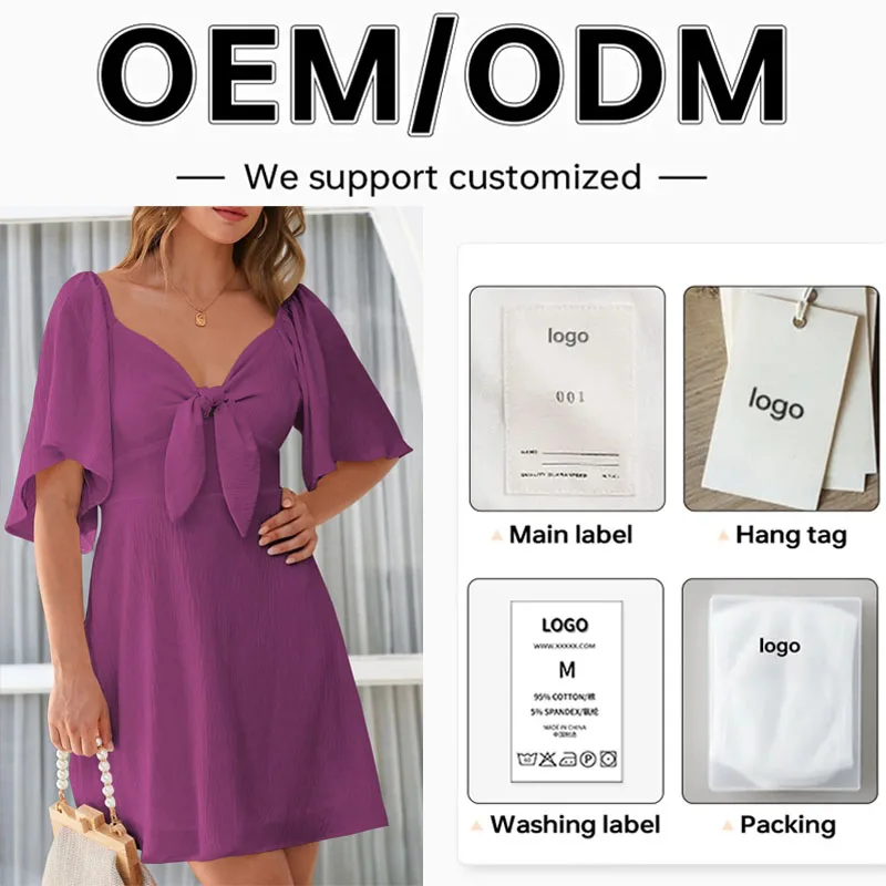 Latest Design 2026 Spring Summer Short Sleeve Bow Tie Deep V Neck Elegant Women Casual Mini Dresses