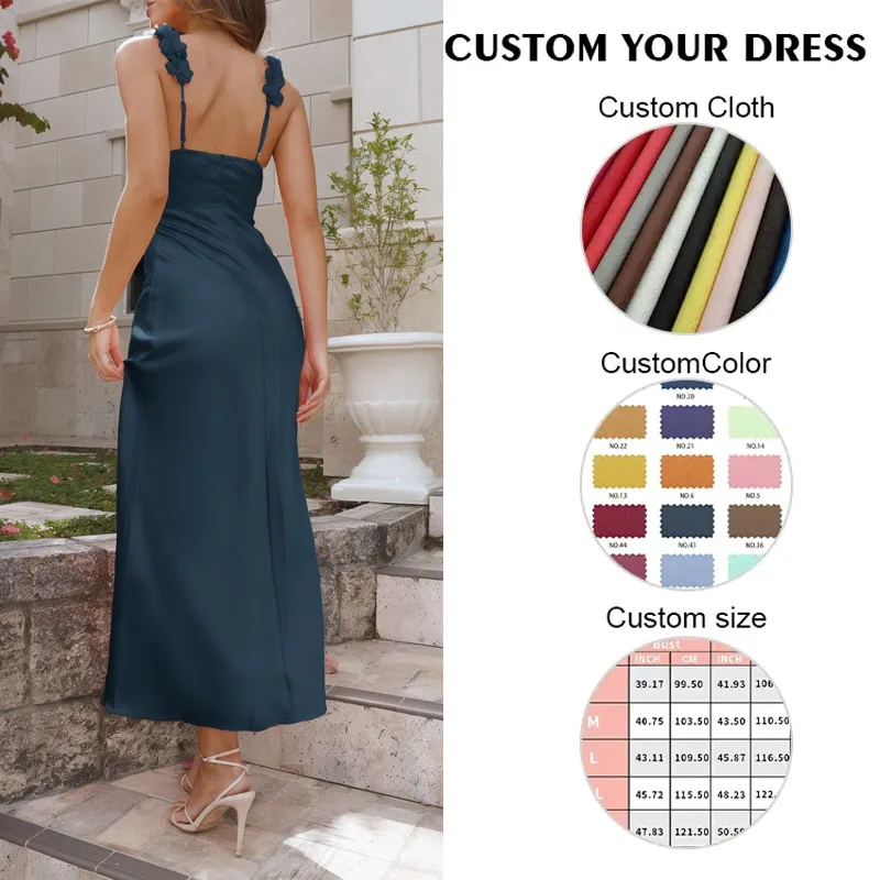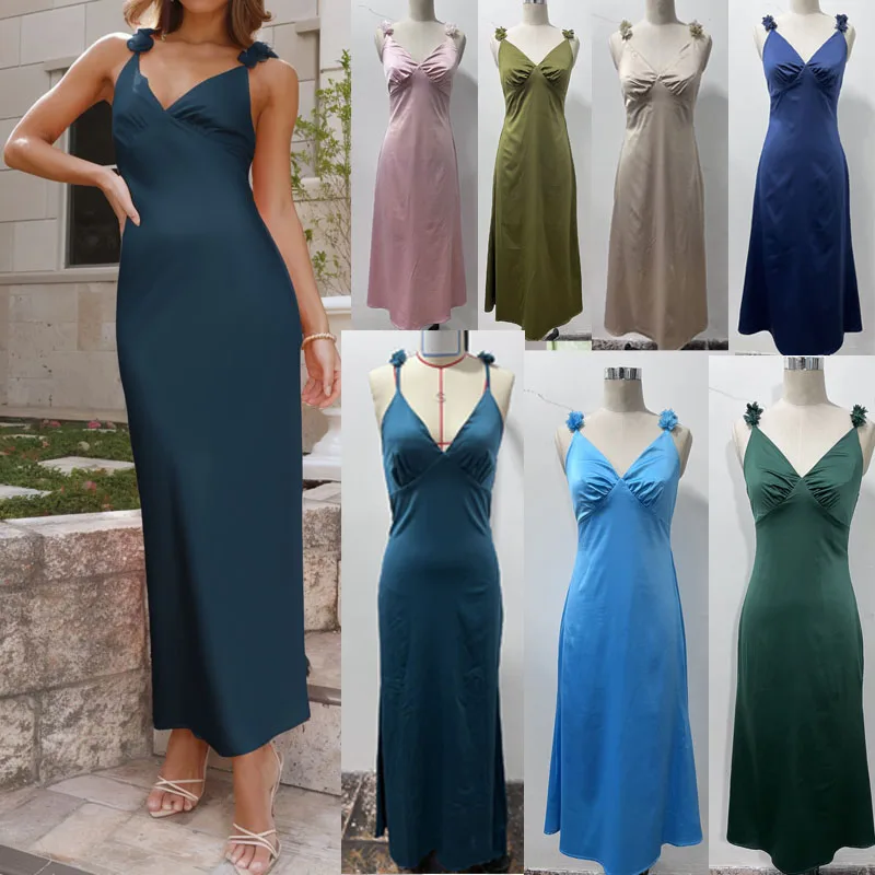 Wholesale Summer V-neck Backless Slim Fit Women Casual Stain Sexy Maxi Dresses