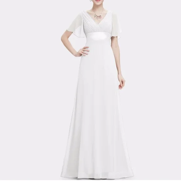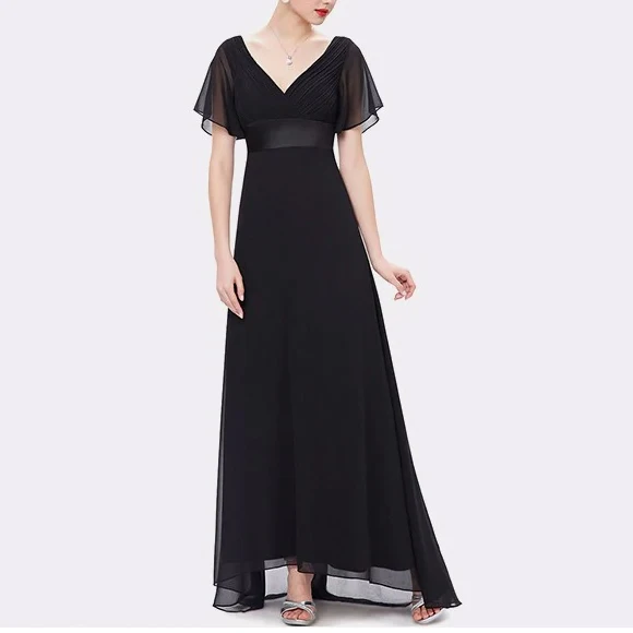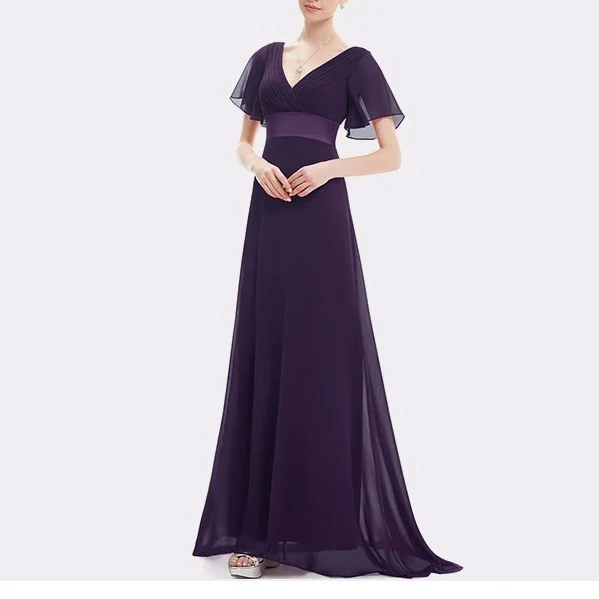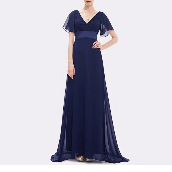 Simple Design Women's V-Neck Chiffon Maxi Dress Breathable for Summer Evening Formal Dress