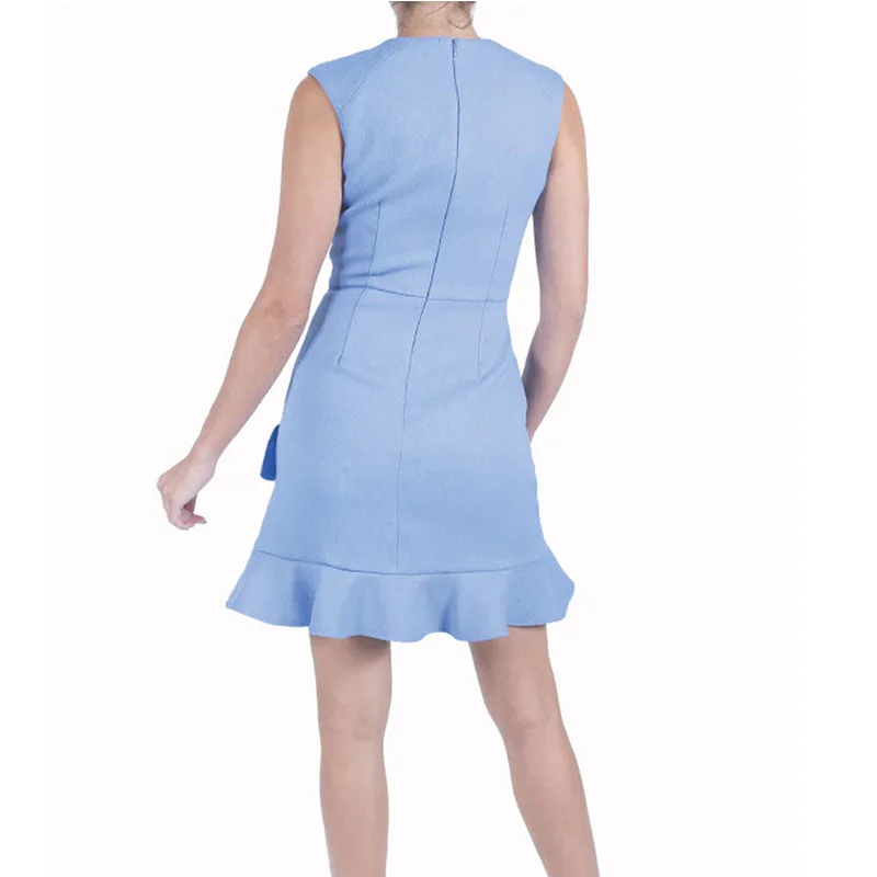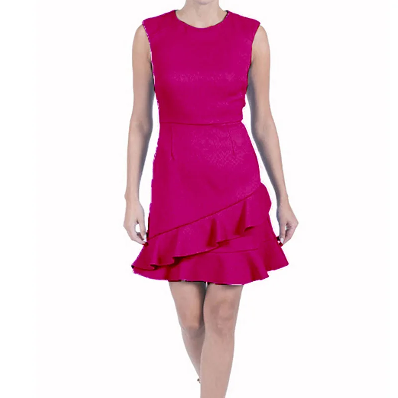 Charming Sleeveless Style Mini Dress With Crew Neck Cascading Ruffle Hem Elegant Bodycon Women's Dress