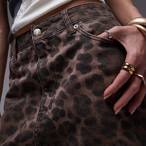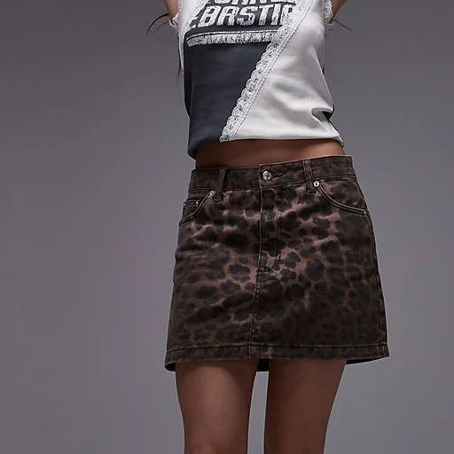 Women Sexy Denim Mini Pelmet Skirt in Dark Leopard Print