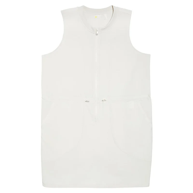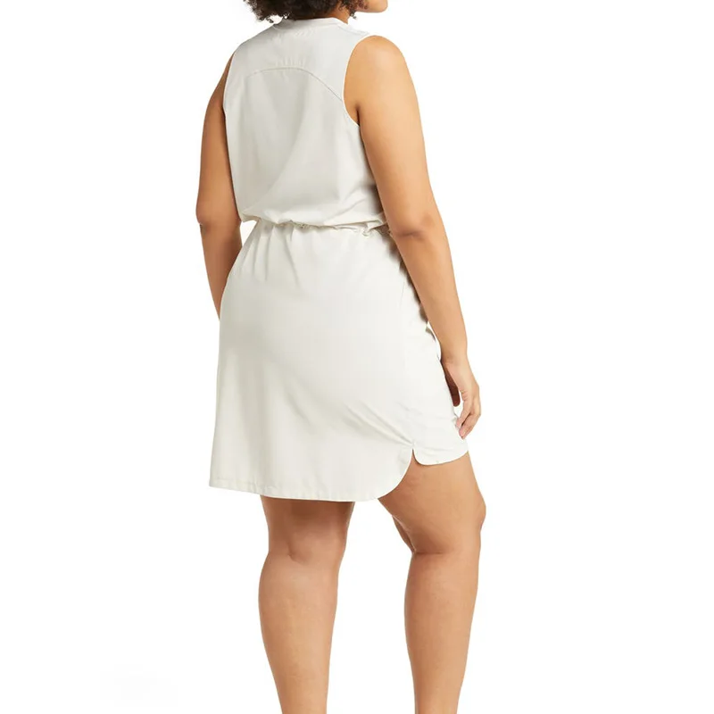 Curve Lady Summer Dress Sleeveless Front Zip Adjustable Cords Utility Dress Casual Plus Size Women Mini Dress