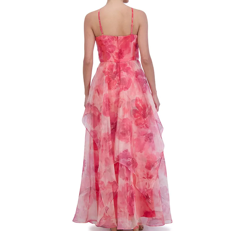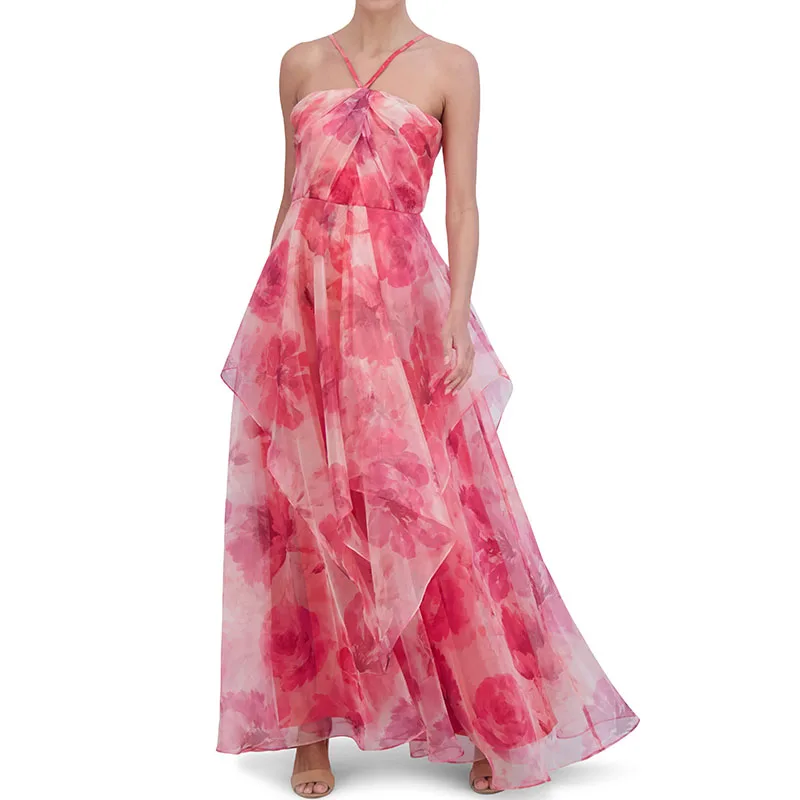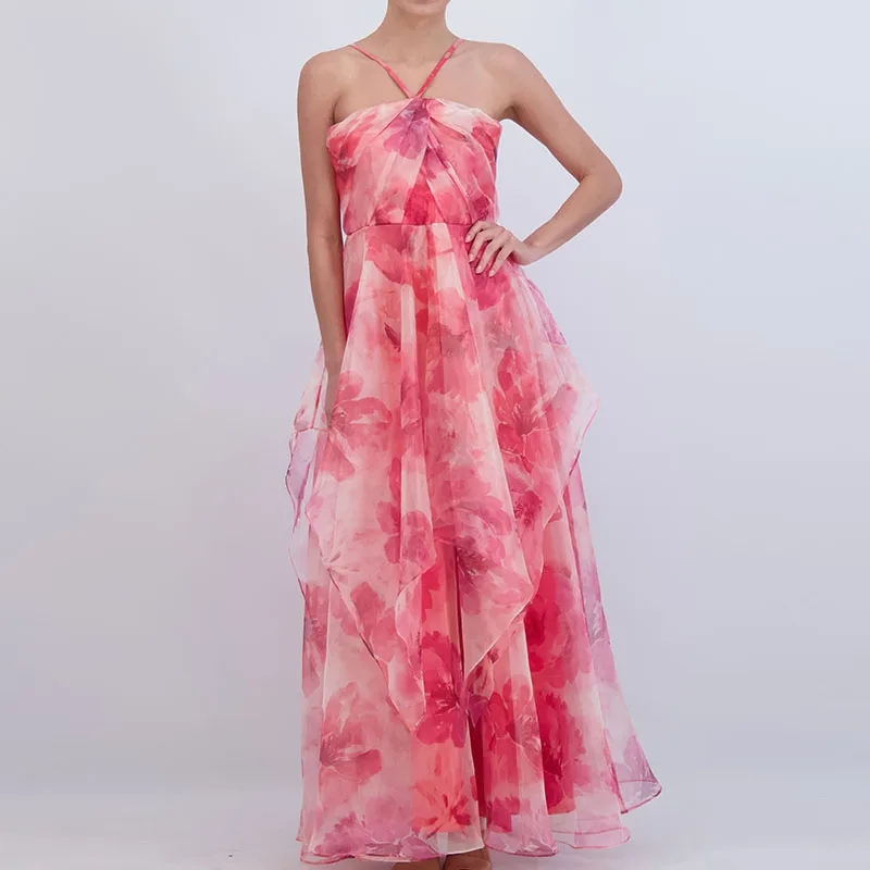 Lady Summer Halter-neck Tiered Hem Party Maxi Dress With Floral A-Line Chiffon Elegant Women's Gown Dresses