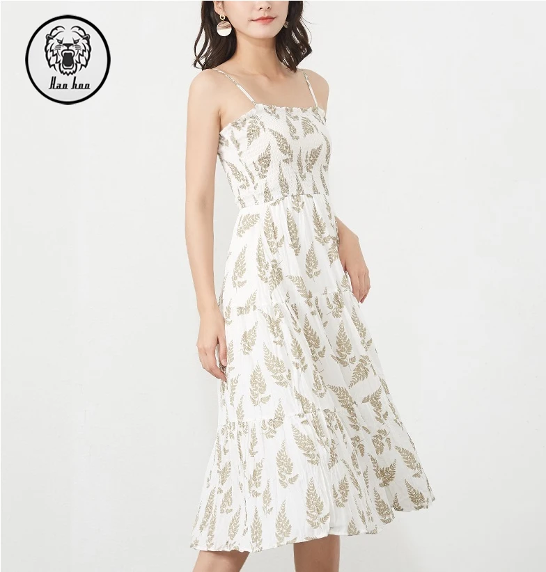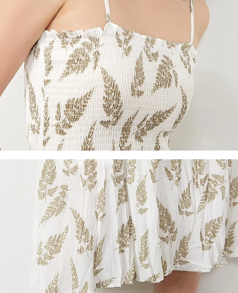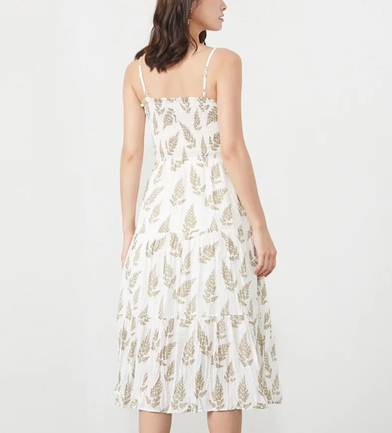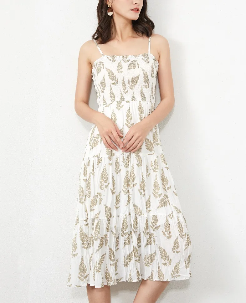 Women Adjustable Strap Sleeveless Long Dress Casual Style Fresh Floral Print Pleated Dress