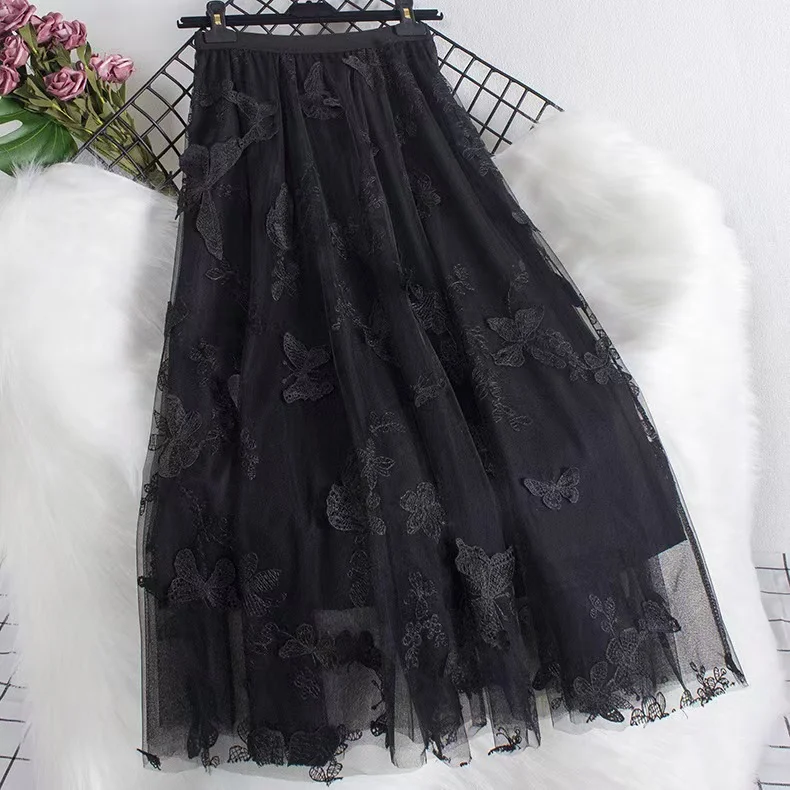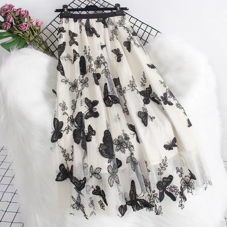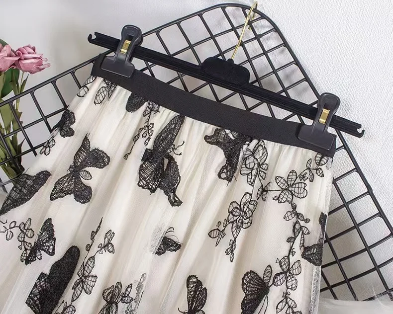 Floor-Length A-Line Floral Eco-Friendly Women's Fairy Skirt Butterfly Embroidery Daily Skirt Custom Clothing Brand