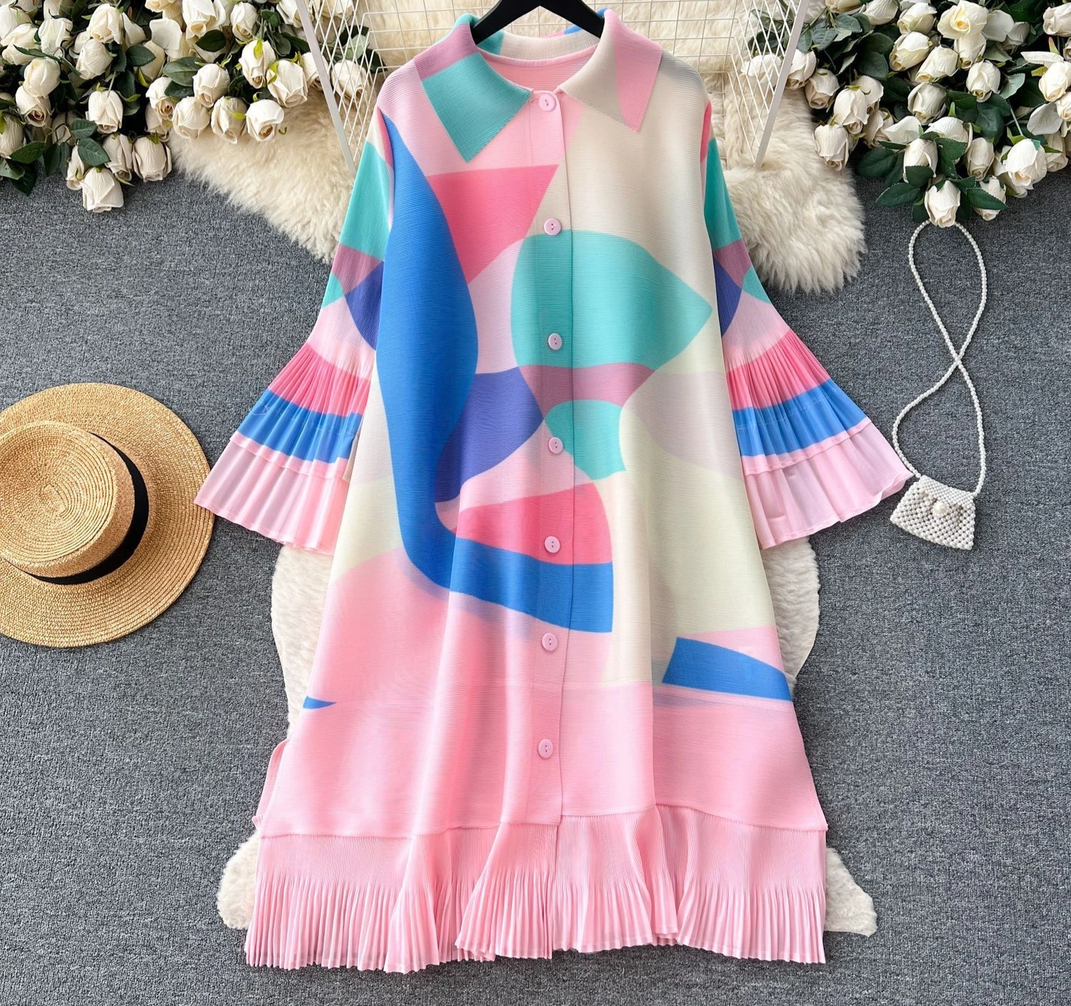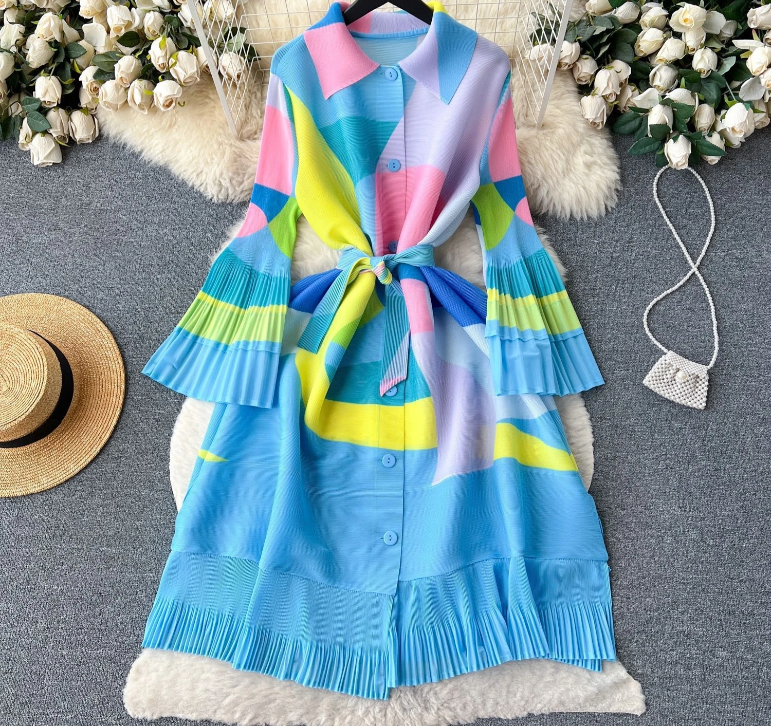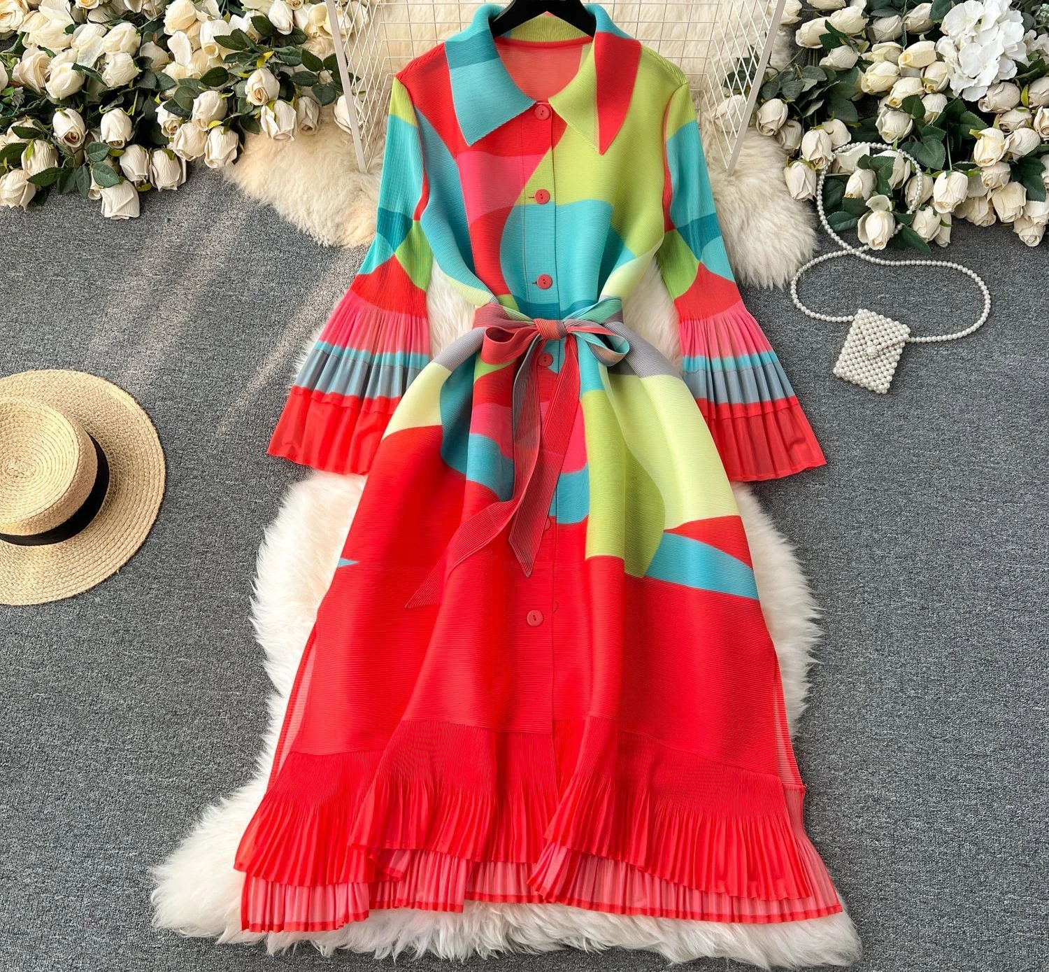 Spring Autumn Women's Casual Dress Printed Design Vintage Single Breasted Long Sleeves Street Wear Split Midi Dresses Custom
