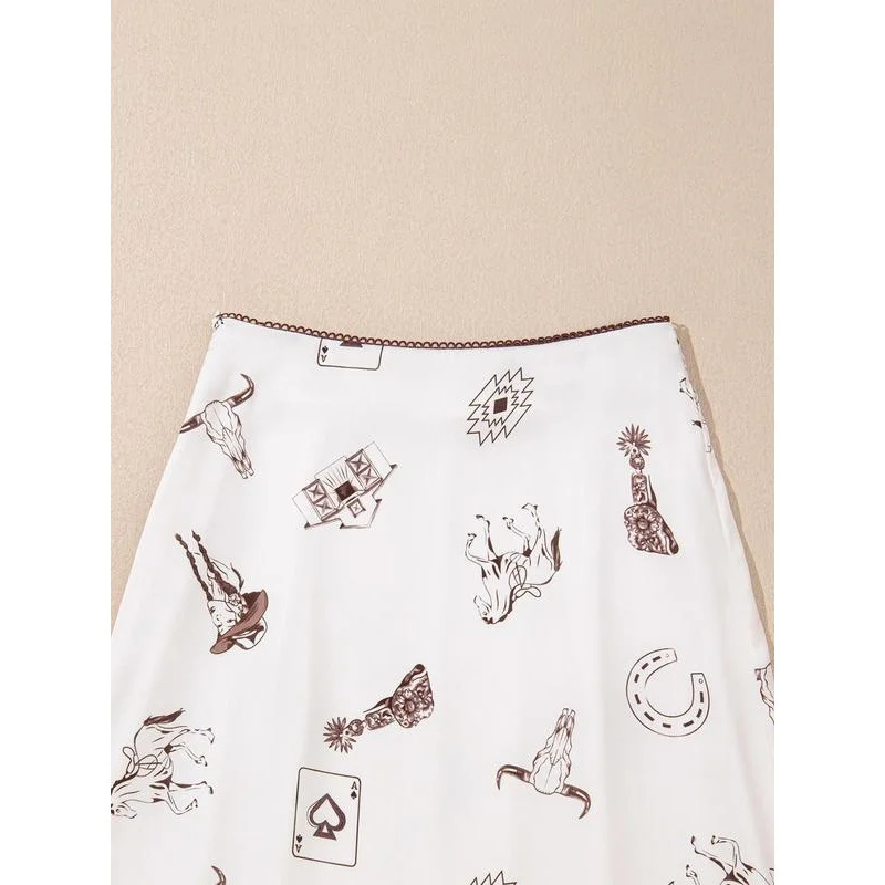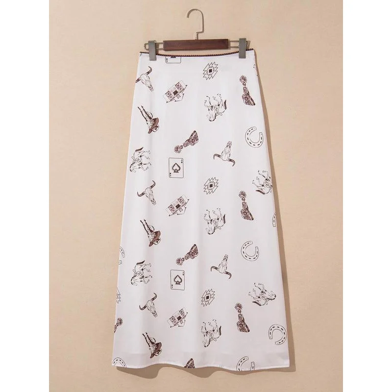New Arrival Summer Wrap Maxi Long Satin Skirt Casual Western Boutique Print Natural Waistline Wholesale