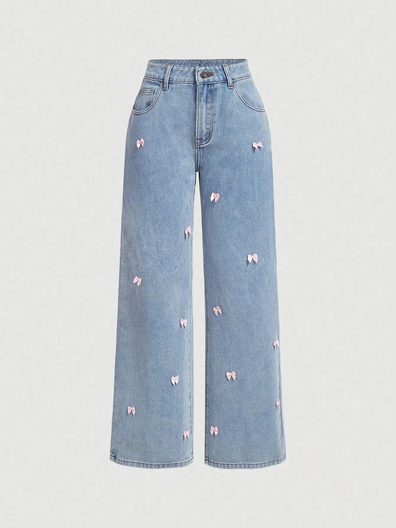 2026 New High Waist Women Jeans Straight Wide Leg Denim Pants with Bowknot Solid Color Metallic Fabric Woven Weave for Women