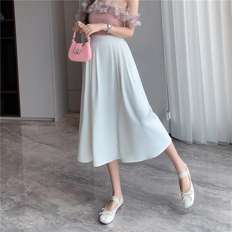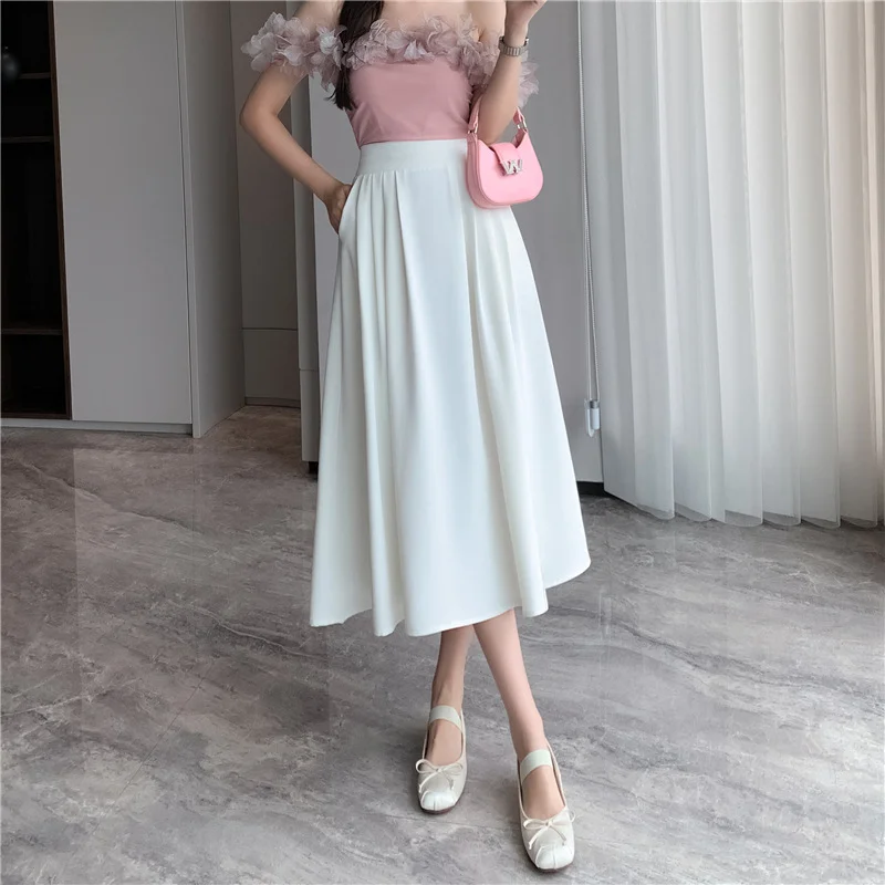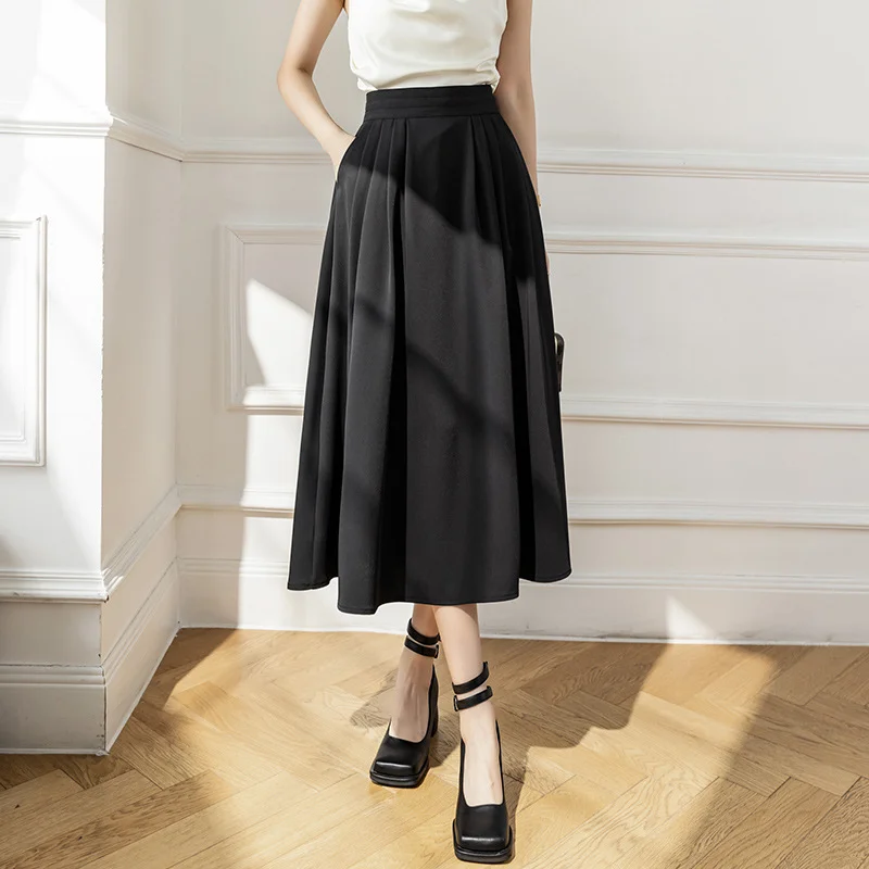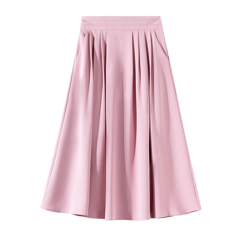 Casual A-line Skirt with Feathers Halflength Mid Length Over Knee Pocket Folded Large Swing Skirt
