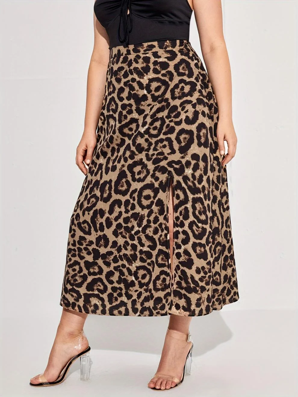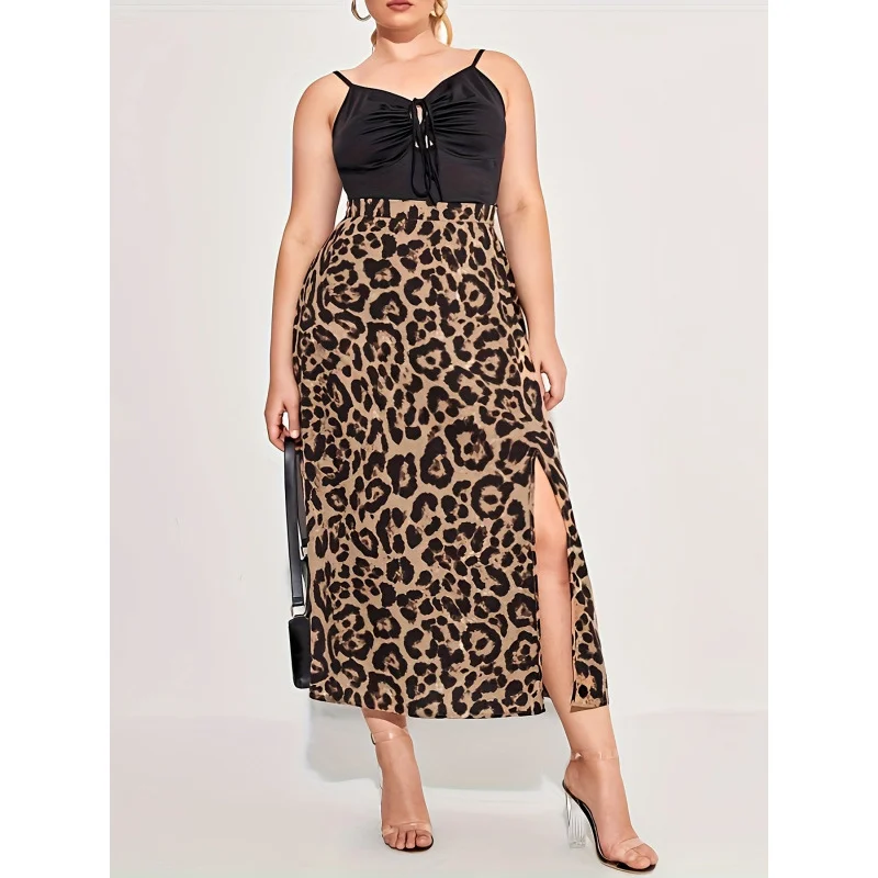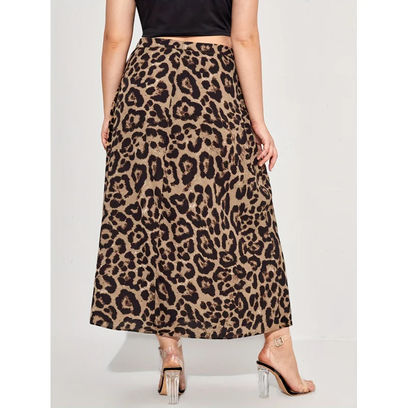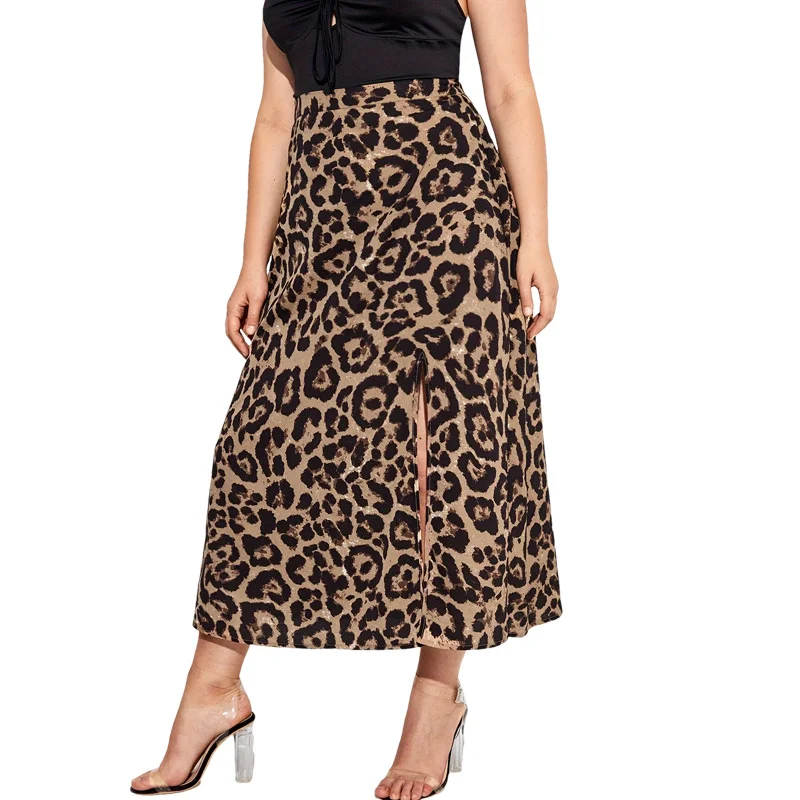 Custom Clothing Brand Summer Ladies Plus Size Fashion Breathable Leopard Print Midi Skirt Plain Dyed