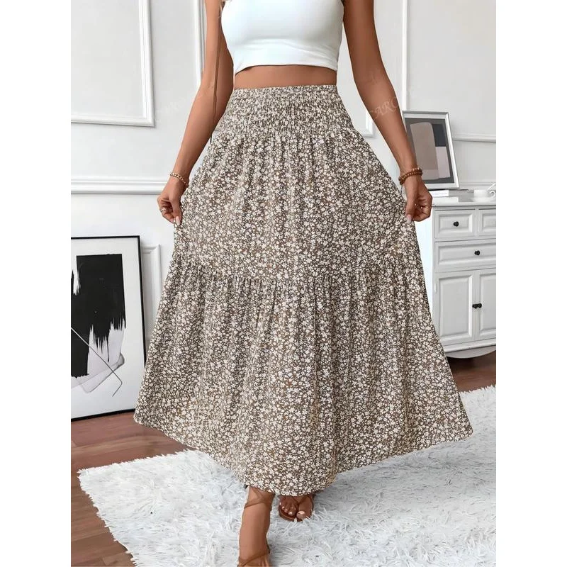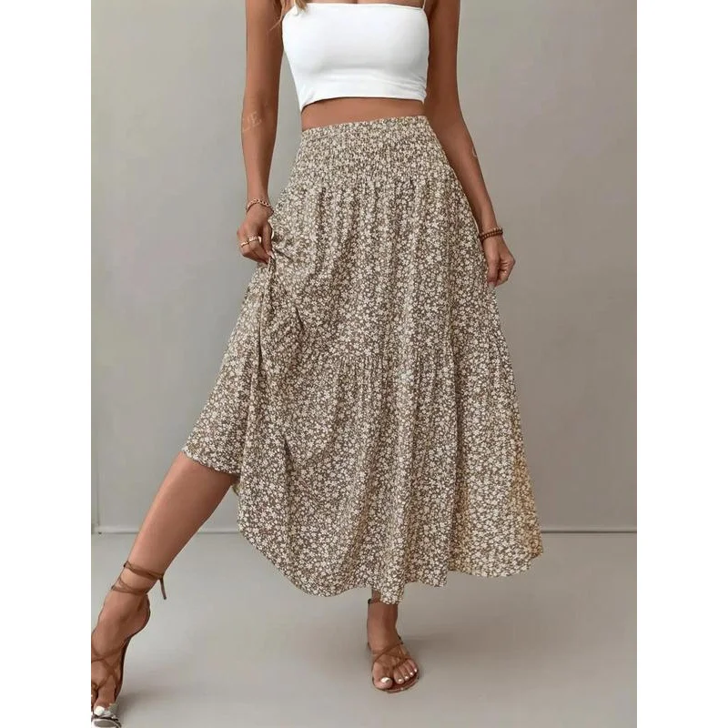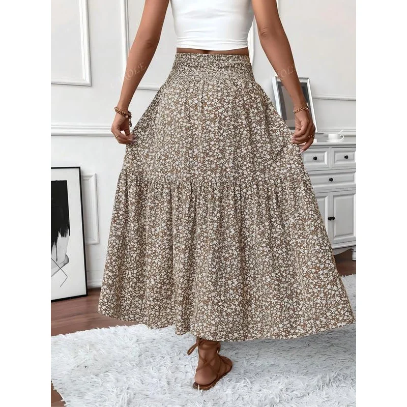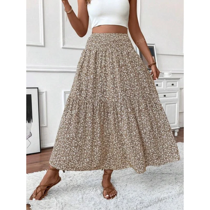 Floral Summer Breathable Casual Midi Dress Women's A-Line Skirt Long Splicing Dresses Women Custom