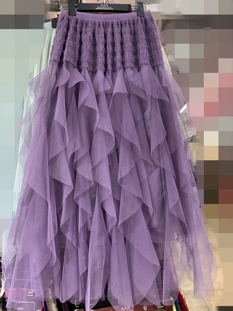 Dresses Women Custom Irregular Mesh Tutu Skirt Woman Empire Waist Long Maxi Breathable Eco-Friendly Casual Skirt