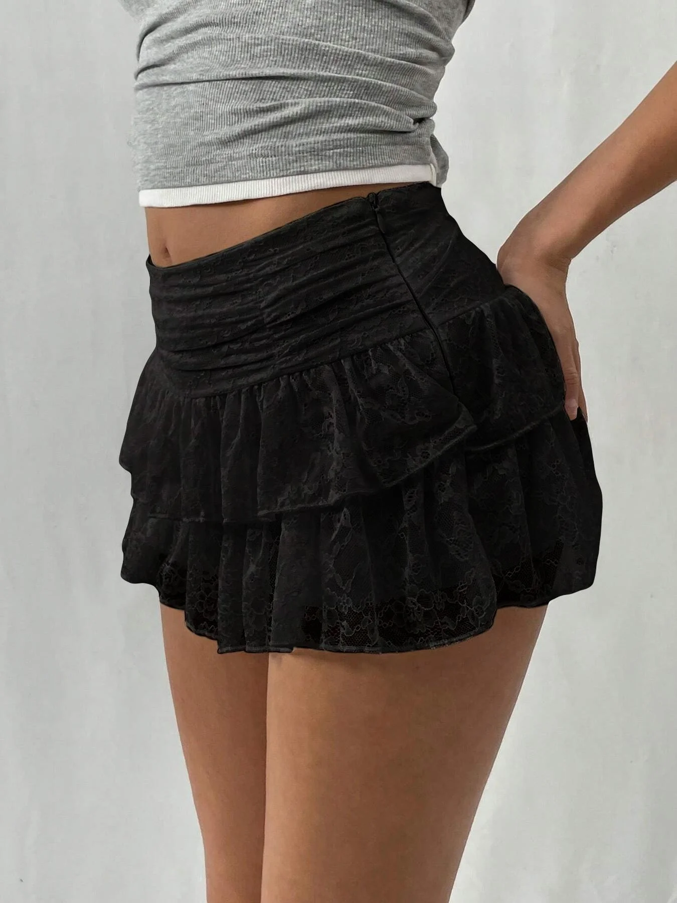 High Waist Custom Clothing Brand Women's Breathable Pleated Lace Mini Dress Casual Simple Ladies' Mini Skirt