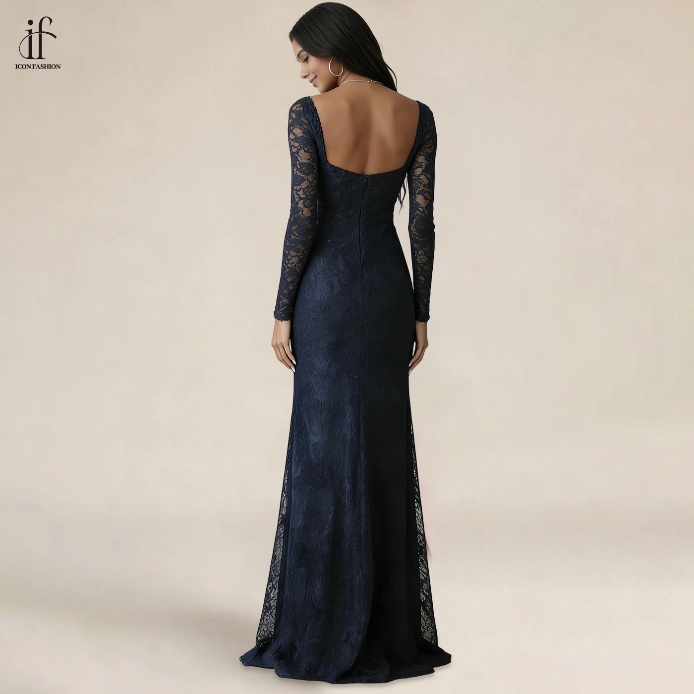 New Women Evening Dress Manufacturer Lace See Through Long Sleeve Sexy Fishtail Floor Length Evening Gowns