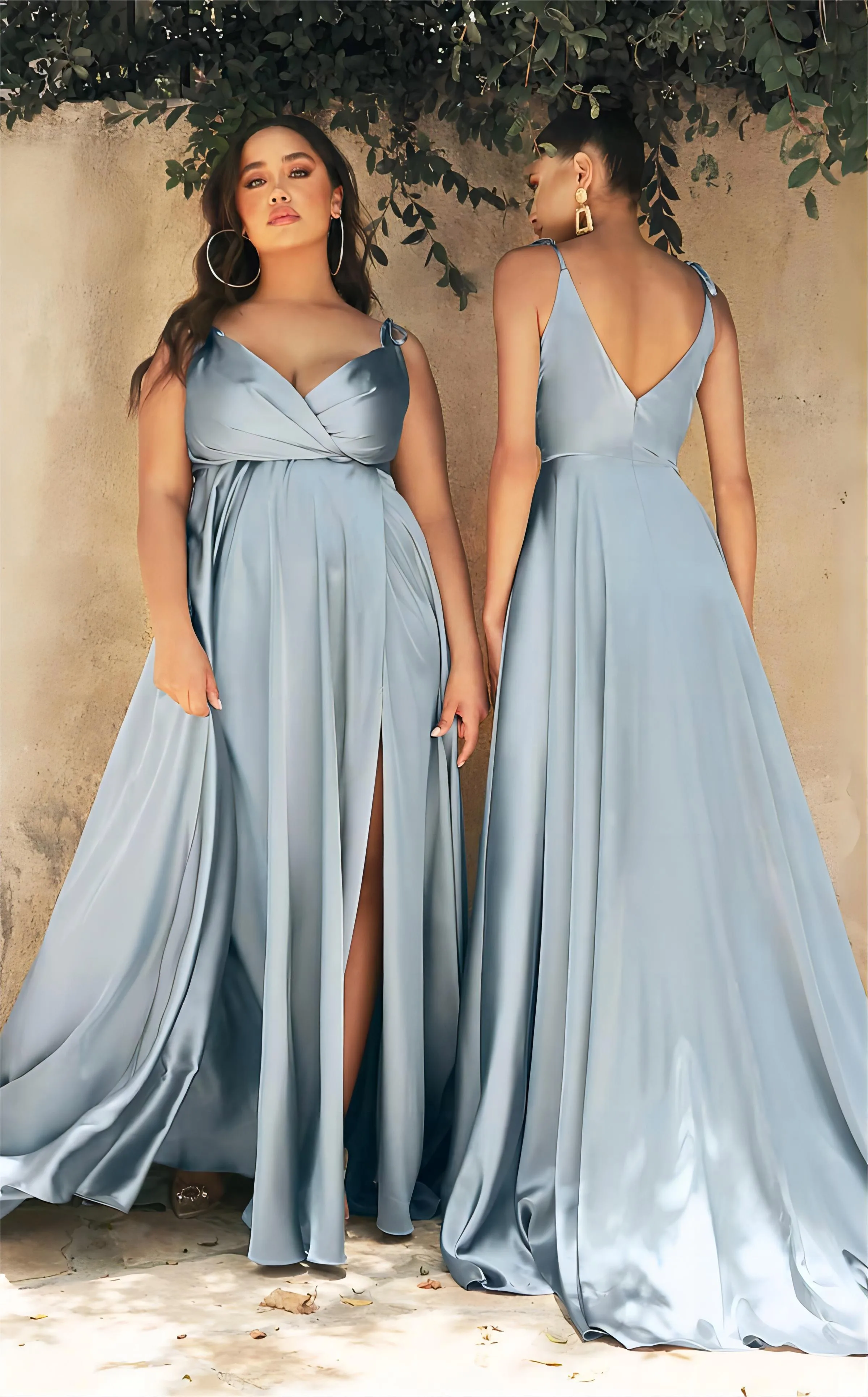 Women Lady Elegant Satin Evening Gown Deep V-neck High Slit Sexy Maxi Wedding Dresses Custom Brand Clothing Manufacturer