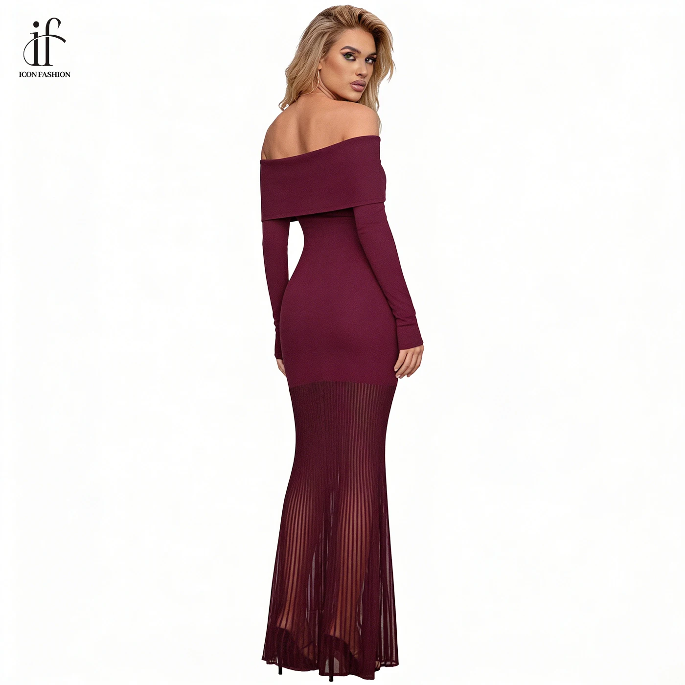 ZYHT 73905 Dusty Rose Off-The-Shoulder Long Sleeve Stretch Jersey Dress Ruched Bodice Floor Length Fish Tail Maxi Dress