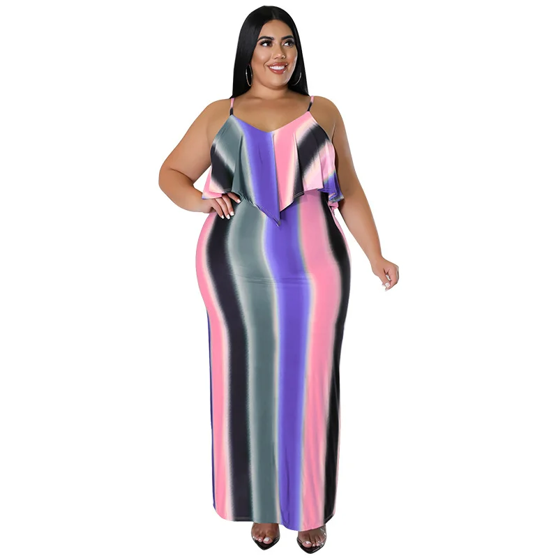 Summer New Plus Size Women's Dress Loose Empire Casual Sexy Bag Hip Dress Color Printing Suspenders Wholesale Womens