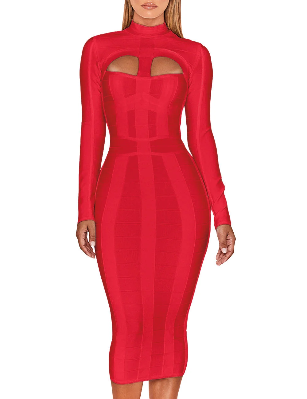 Fashion Cut Out Long Sleeve Bandage Dresses Women Custom White Bodycon Elegant Mid Length Casual Dress