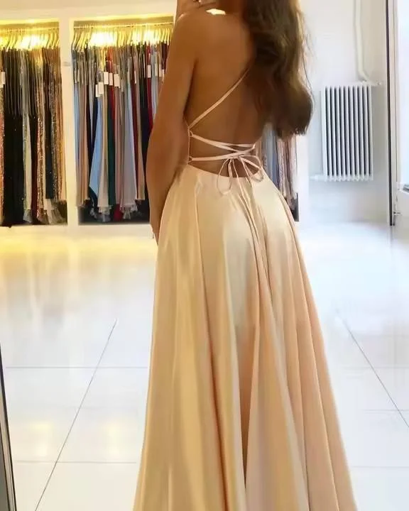 Elegant Christmas Party Satin Evening Gowns Sexy Side Slit Adjustable Straps Prom Dress Custom Women's Bridesmaid Dresses