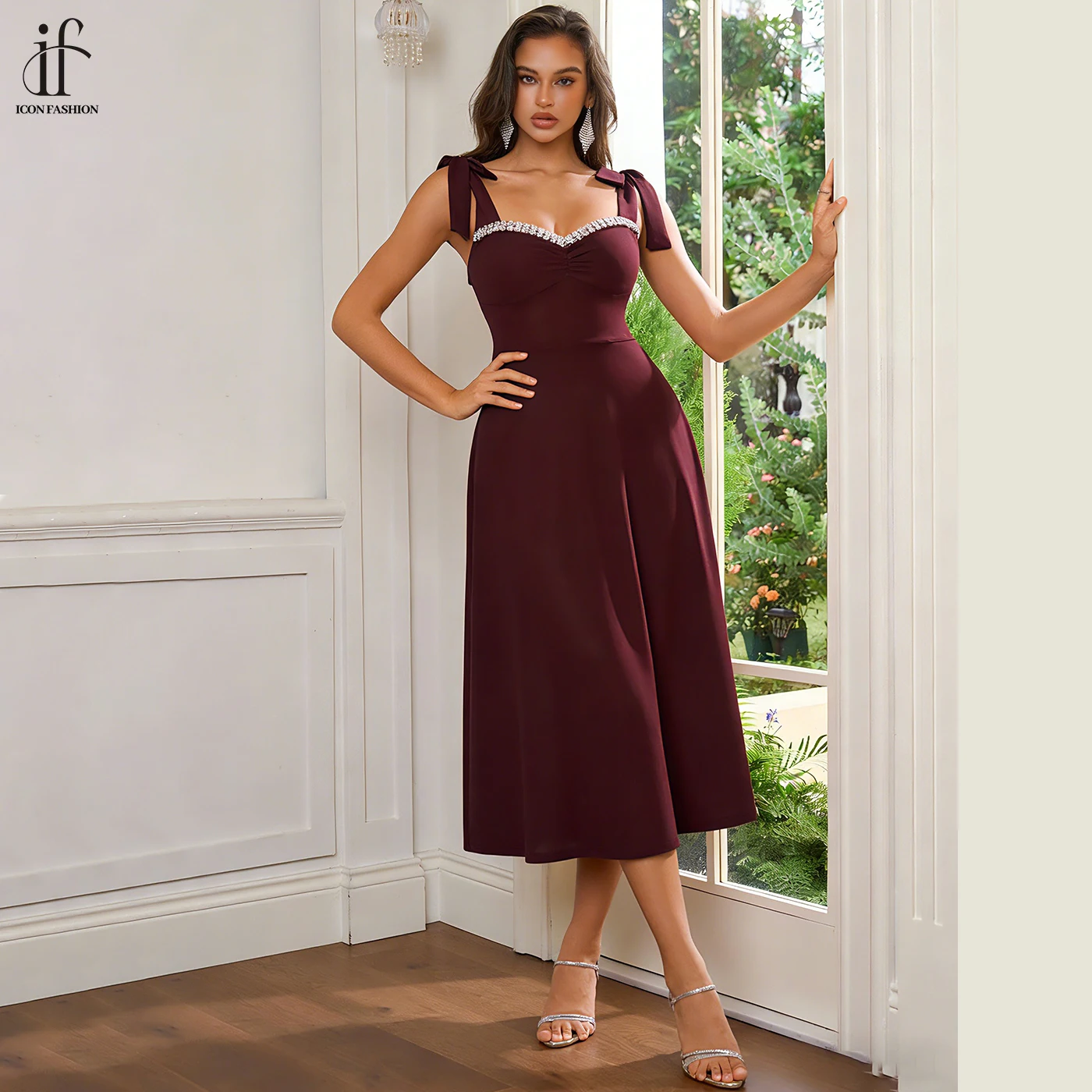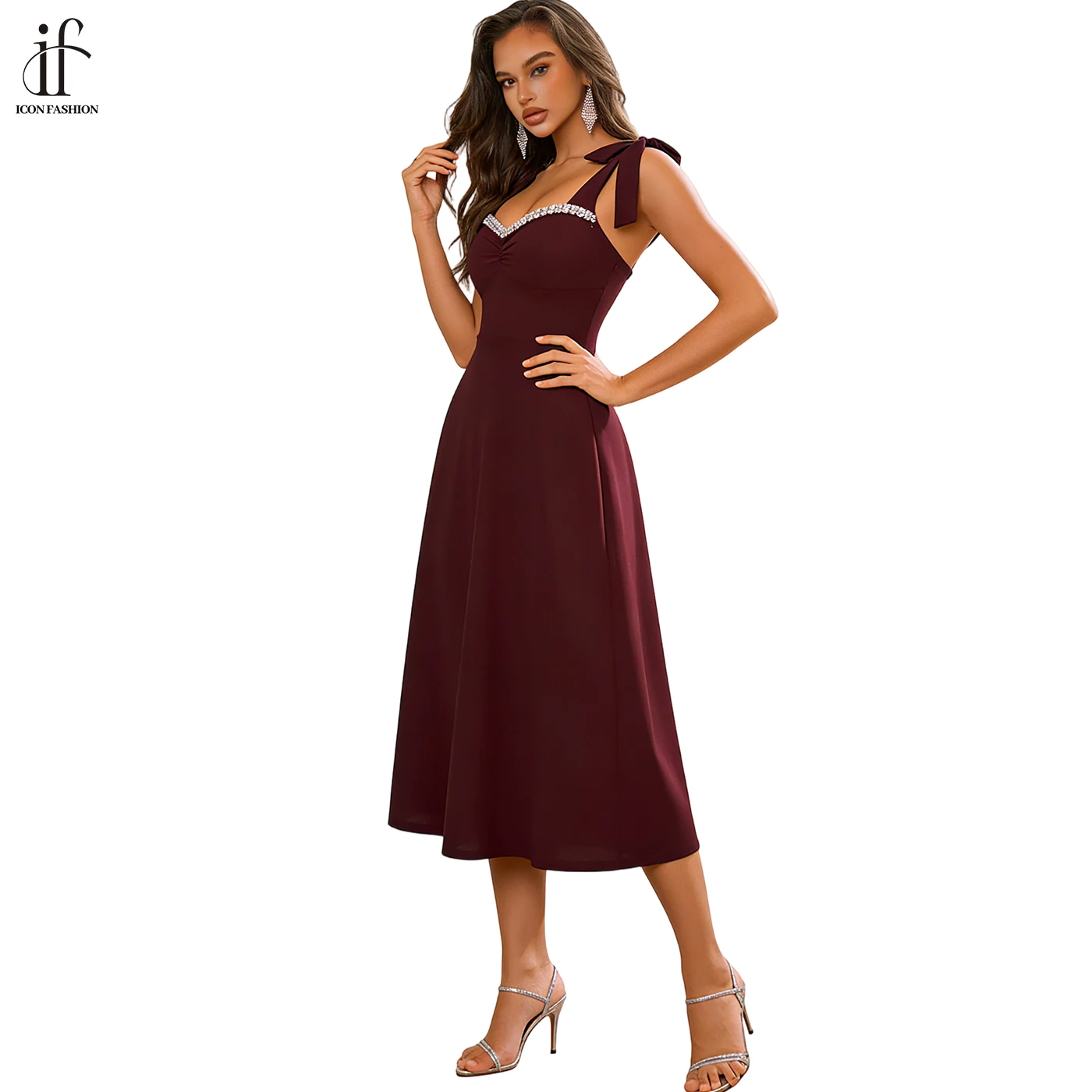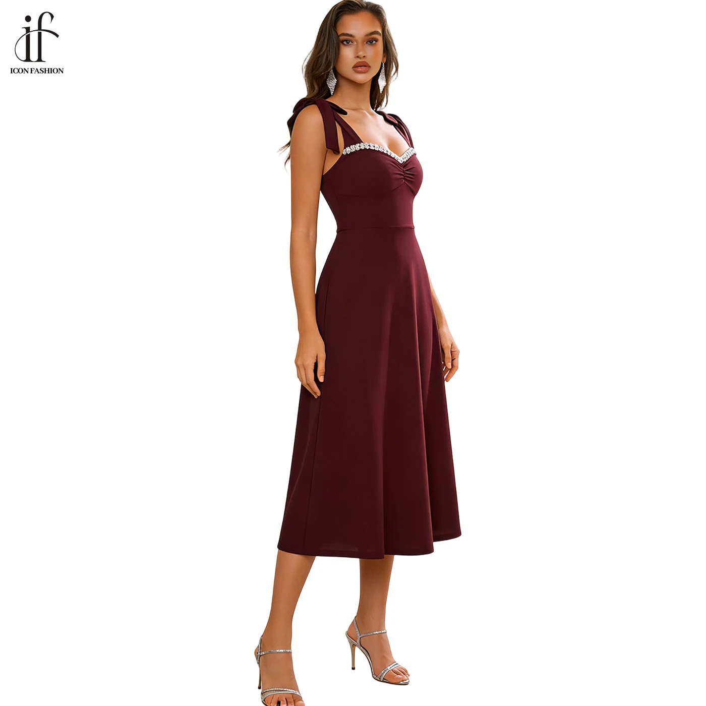 Custom Evening Gowns Sexual Midi Sundress Luxury Party Dress High Quality V-Neck Diamond Floor-Length Evening Dress