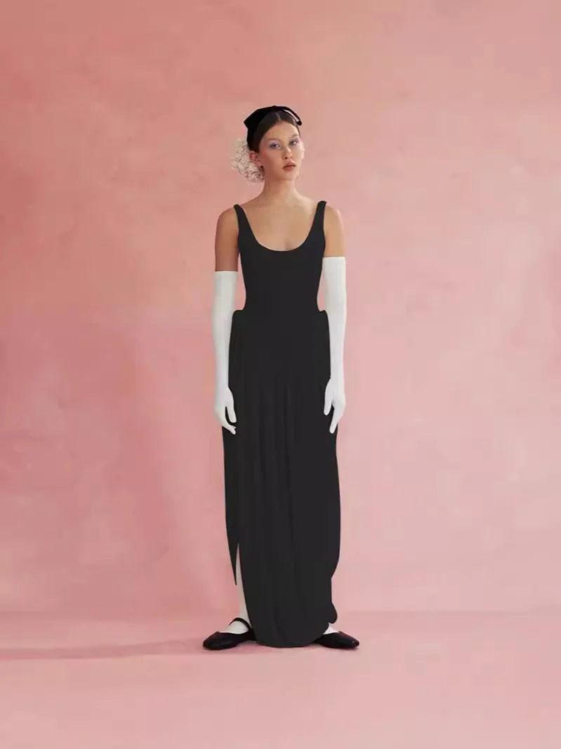 2026 Summer Elegant Vacation Style Long Dress Women's Sexy Irregular Vest Dress with Empire Waistline Casual Maxi Length Dresses