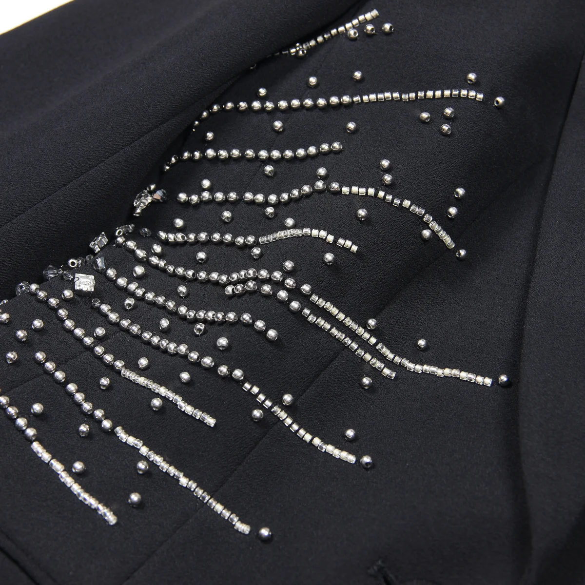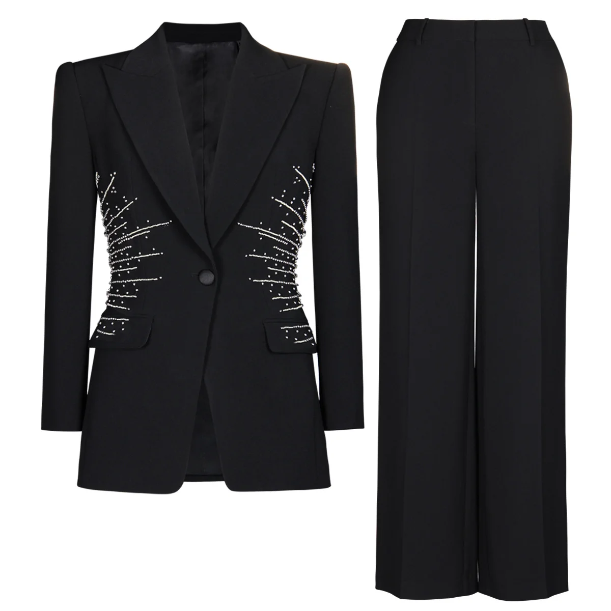 Fine Workmanship Rhinestone Bead Lady Office Women Solid 2pcs Suit Notched Long Sleeve Single Button Blazer Wide Legs Pants