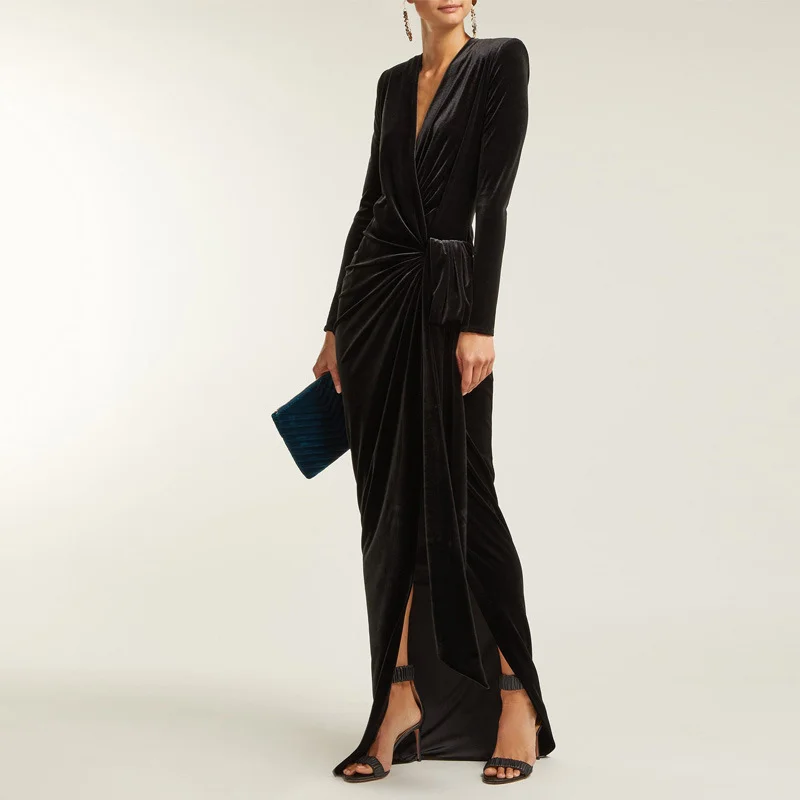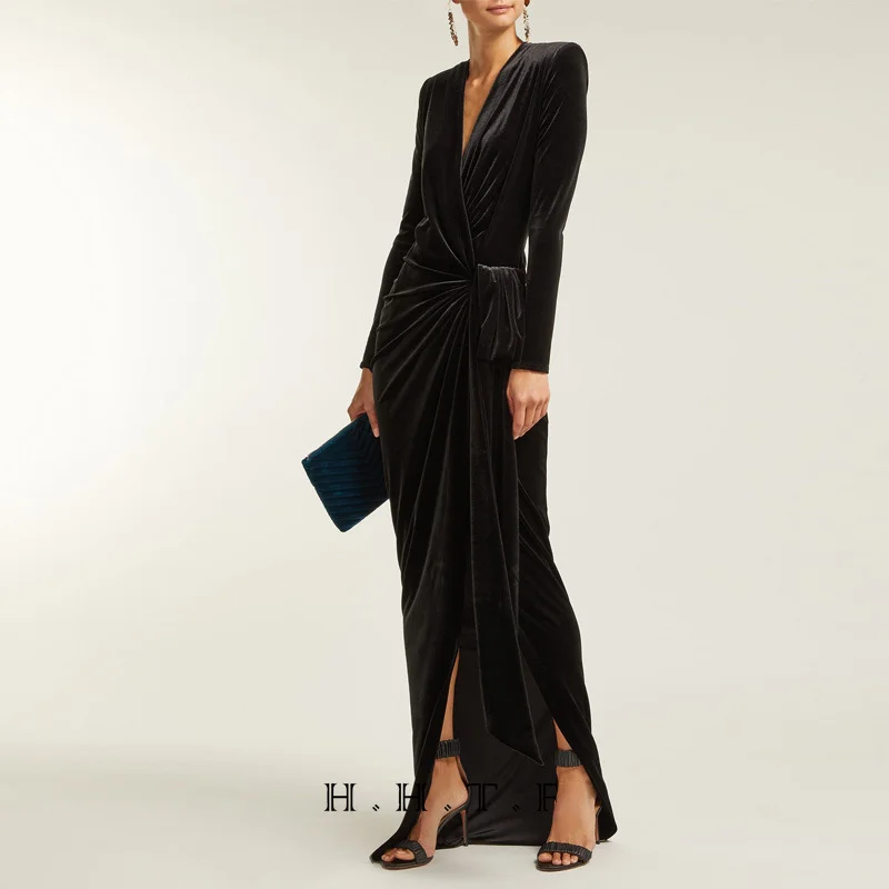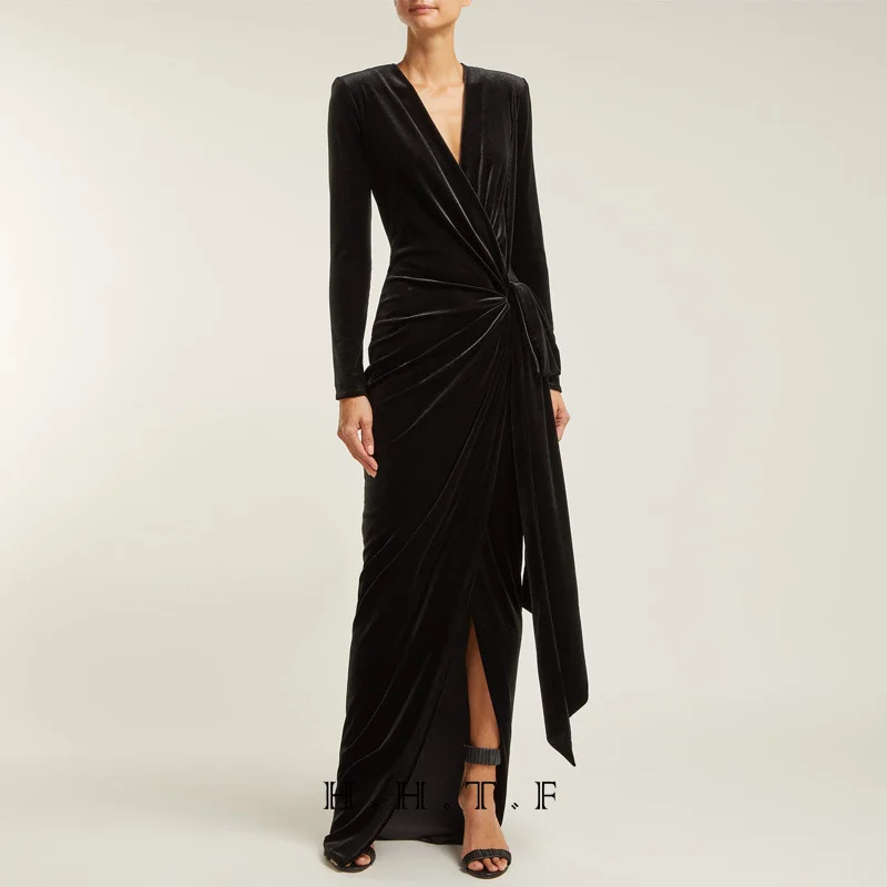 High End Modest Velvet Deep V Neck Elegant Evening Gown Dresses Party Women Long Dress Asymmetrical Evening Dress