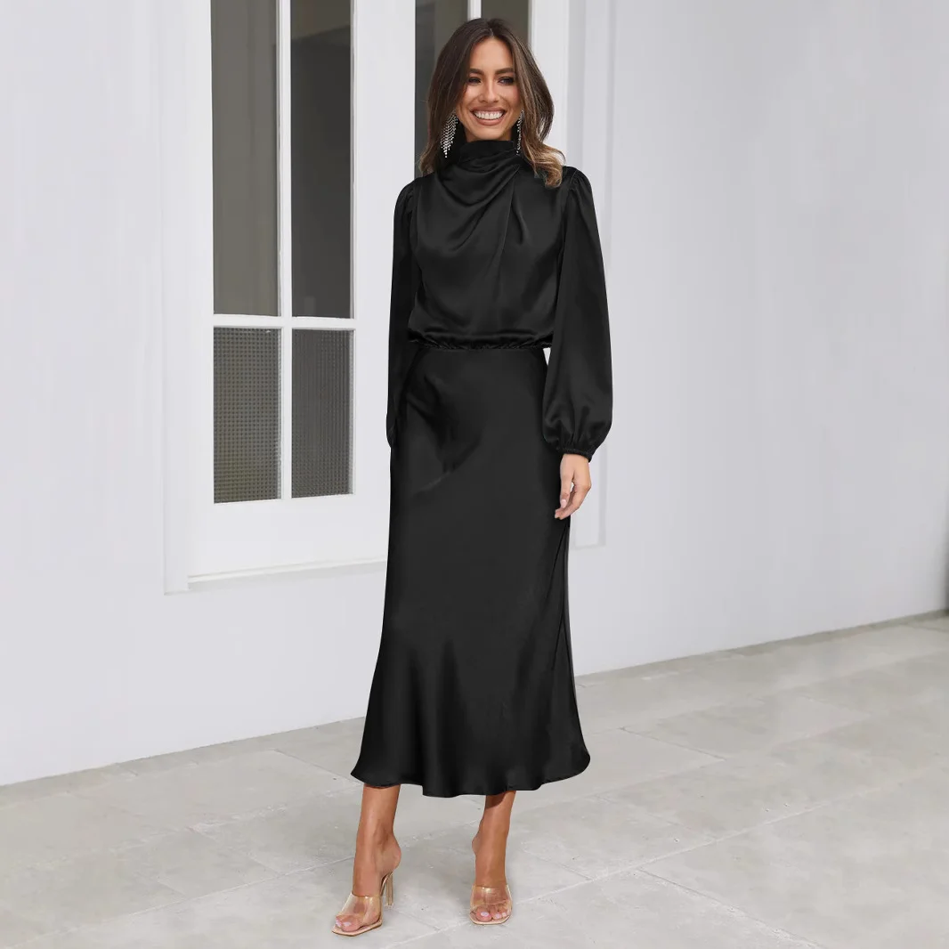 2026 Women's Autumn New Satin Long Sleeved Loose Dress Elegance Evening Dress