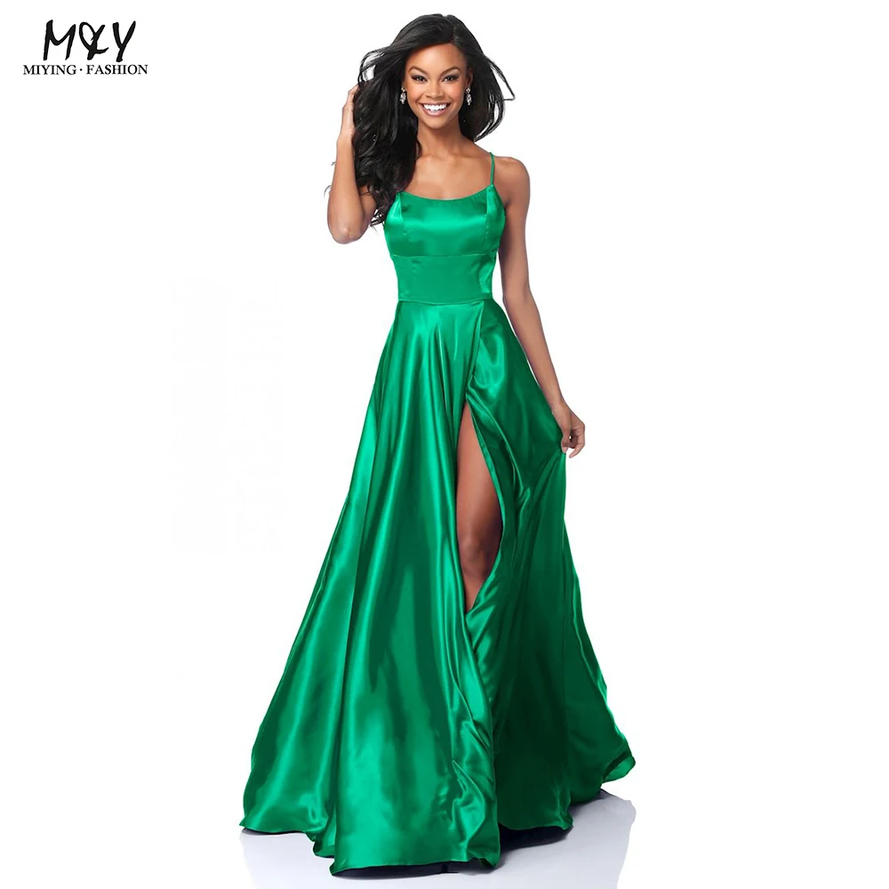 Wholesale Custom Solid Color Lady Elegant Long Sling Prom Dress Women's Fashion Satin High Quality Front Split Evening Dress