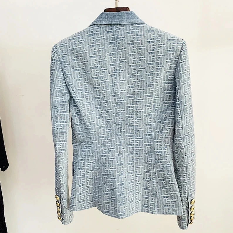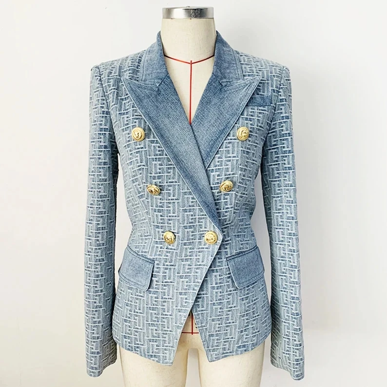Autumn High Quality Fashionable Denim Casual Long Sleeved Printed Suit Jacket Elegant Double-breasted Women's Blazer