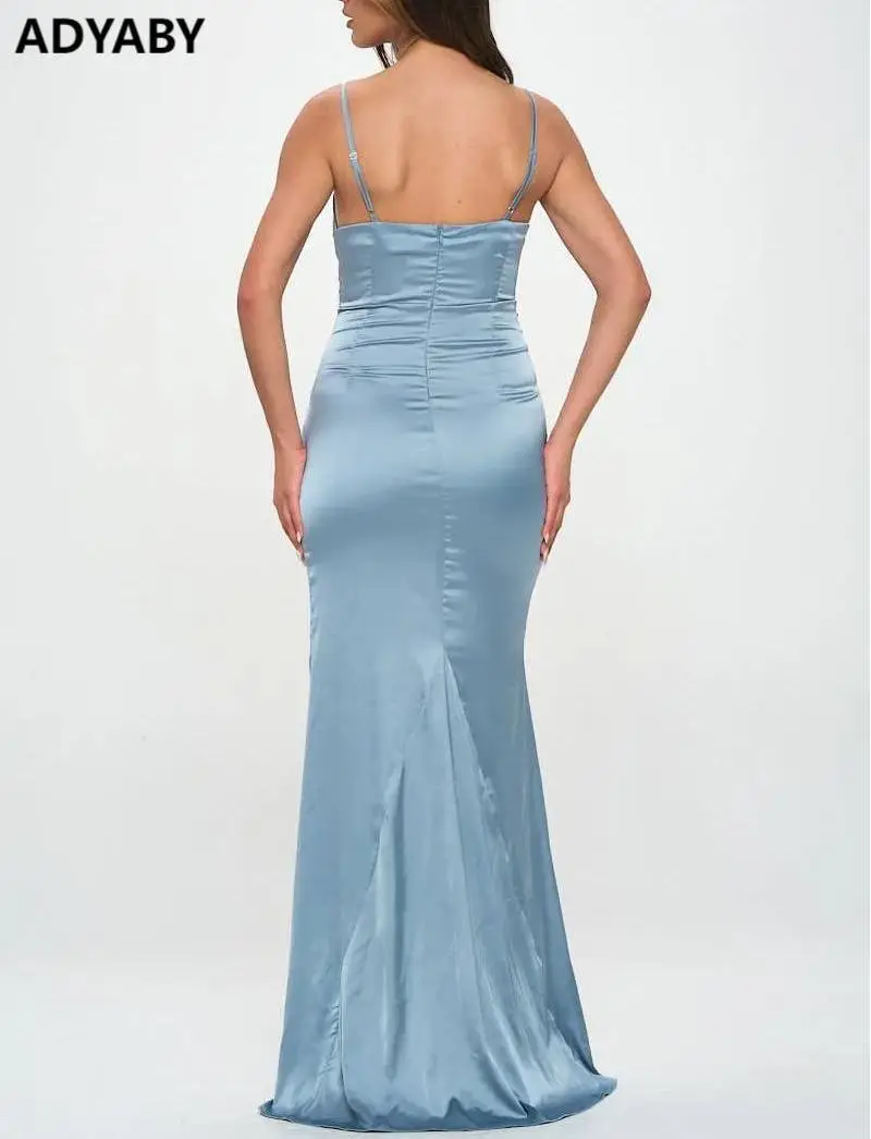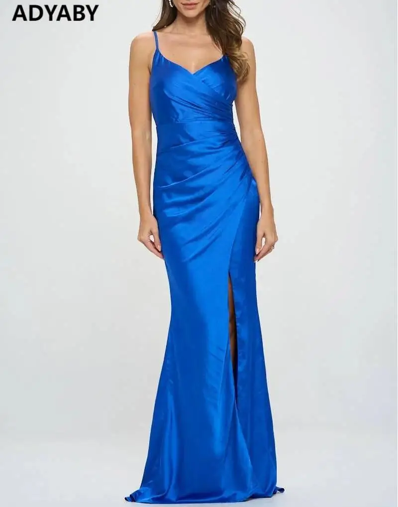 ADYABY Custom Women Satin Evening Dress Sexy Thigh Side Slit Elegant Floor-Length Dress Solid Color Dinner Ball Gown