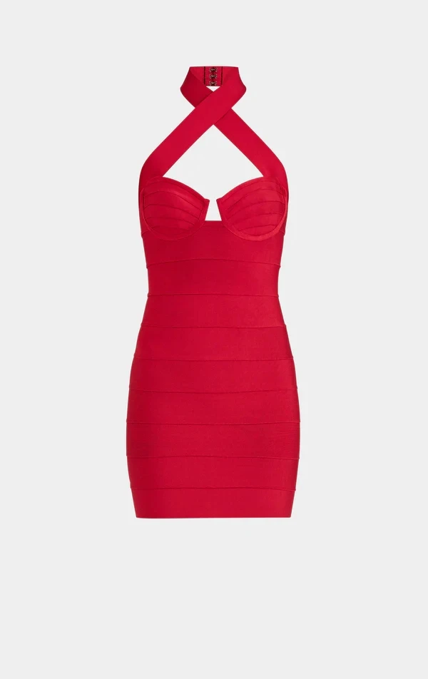 2026 New Sexy Bodycon Mini Dress Cross Collar Design Corset High Waist Bandage Dress Women's Dinner Party Evening Gown