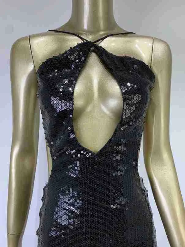 Sexy Ladies A-Line Breathable Natural Waistline Sequin Halter Backless Midi Party Evening Dress for Women