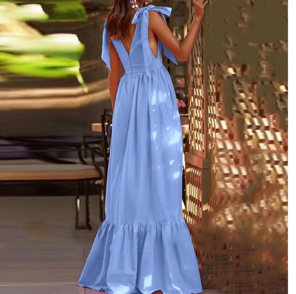 New Arrival Women's Sexy Backless Halter Sweet Midi Ruffles Breathable Daily Dress