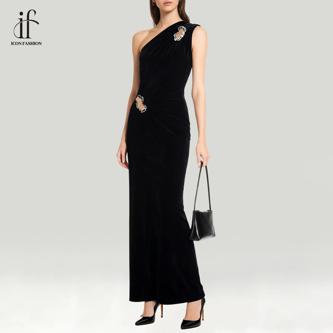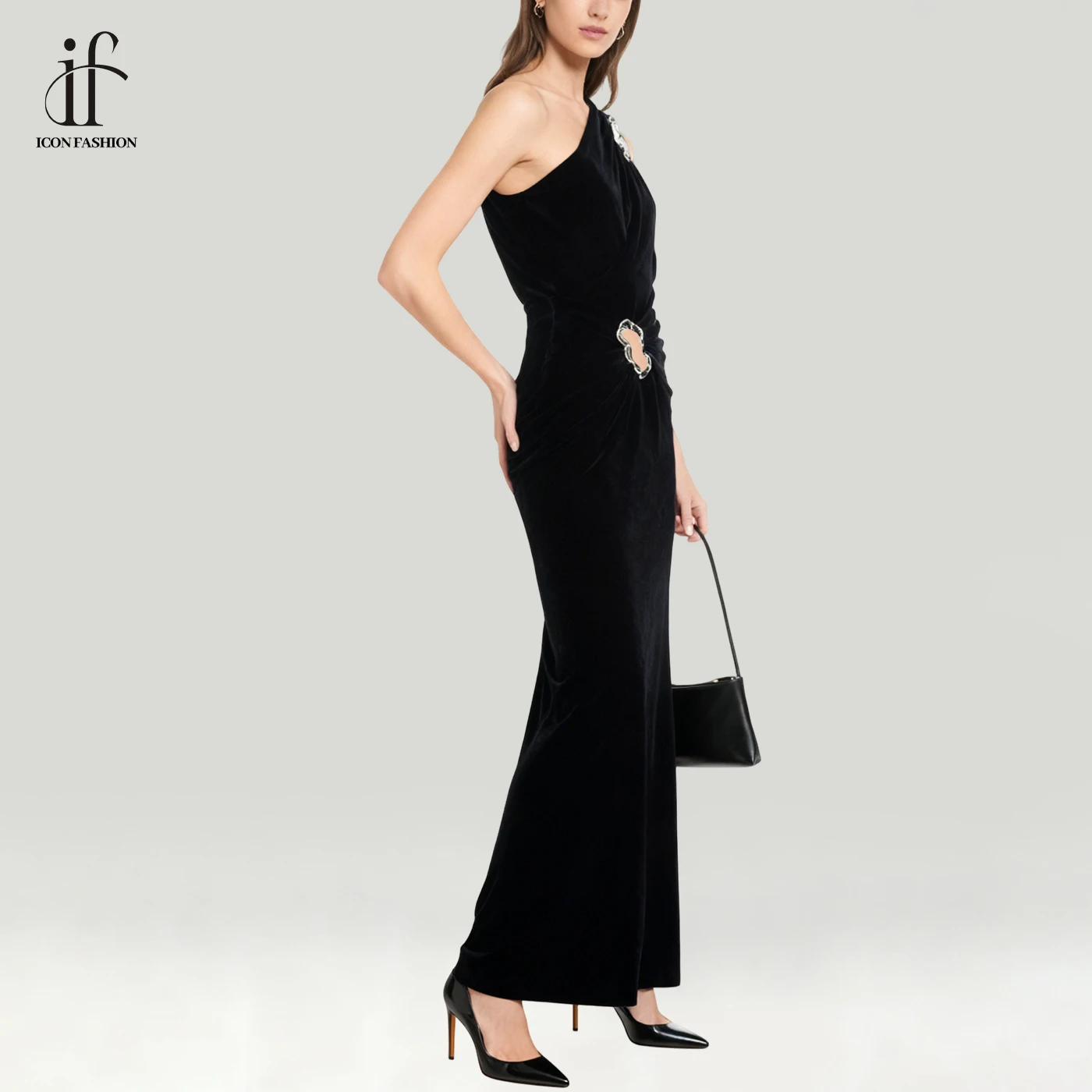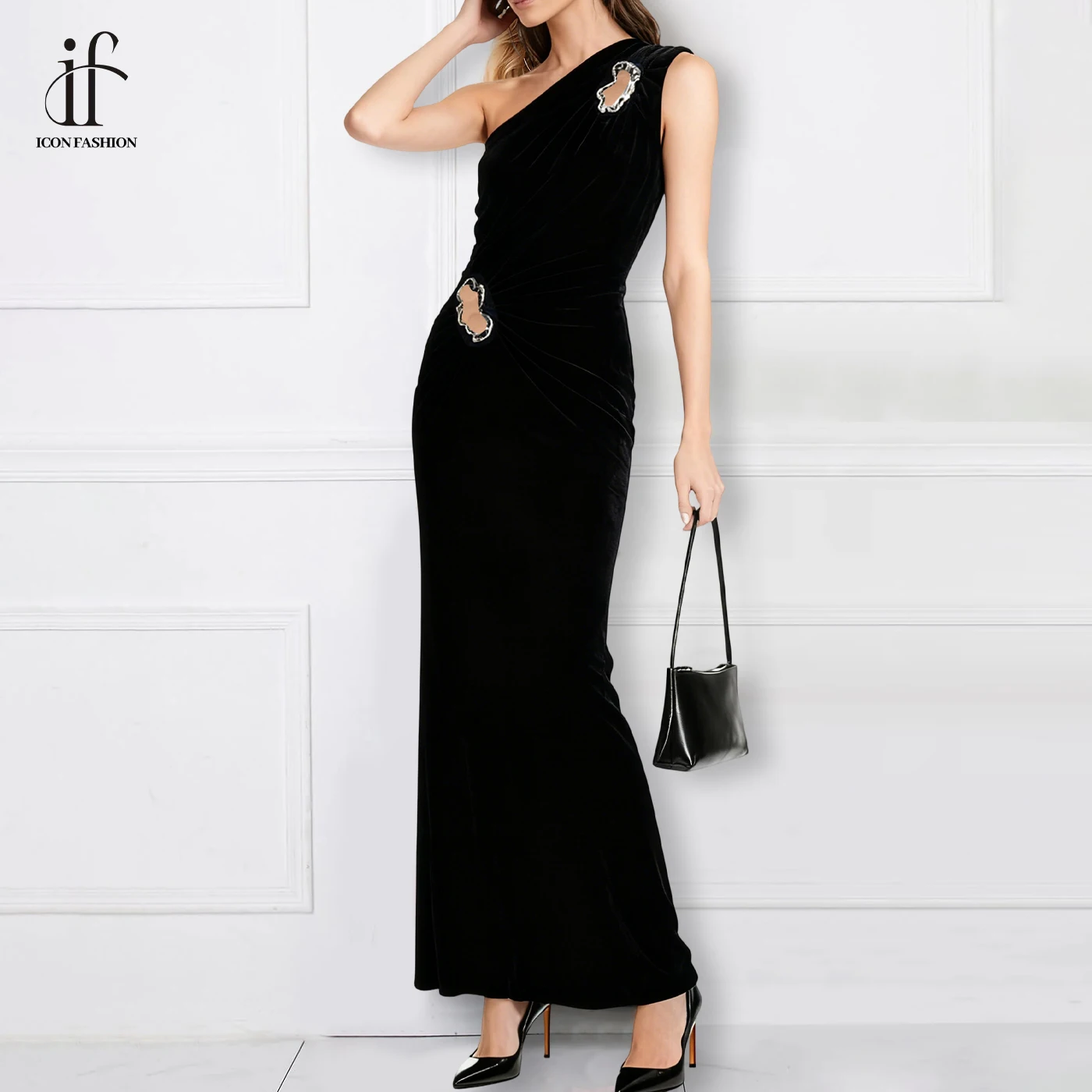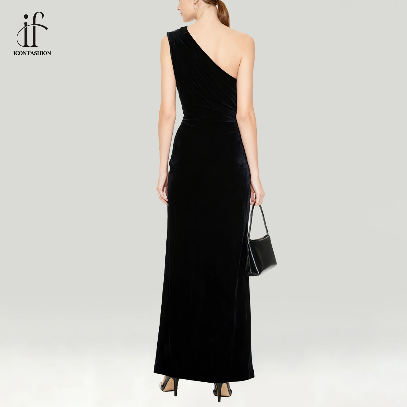 ZYHT 73849 European Wholesale Fashion Casual One Shoulder Ruched Maxi Dress Side Slit Pleated Long Sleeve Dresses for Women