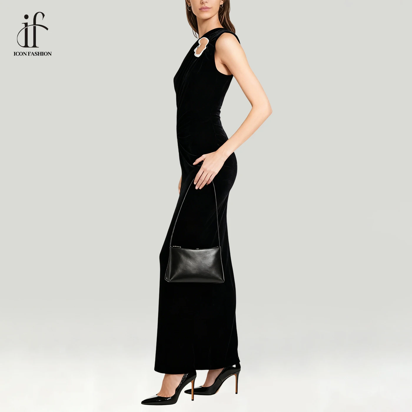 Elegant Black Floor-Length Straight Silhouette Simple Evening Dress