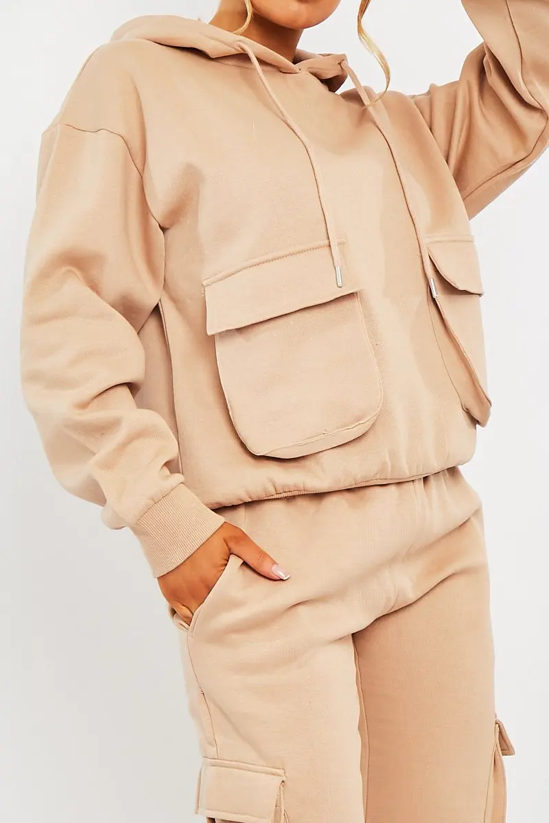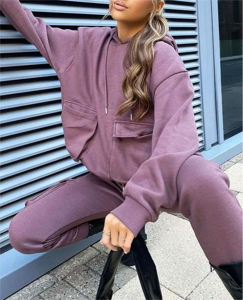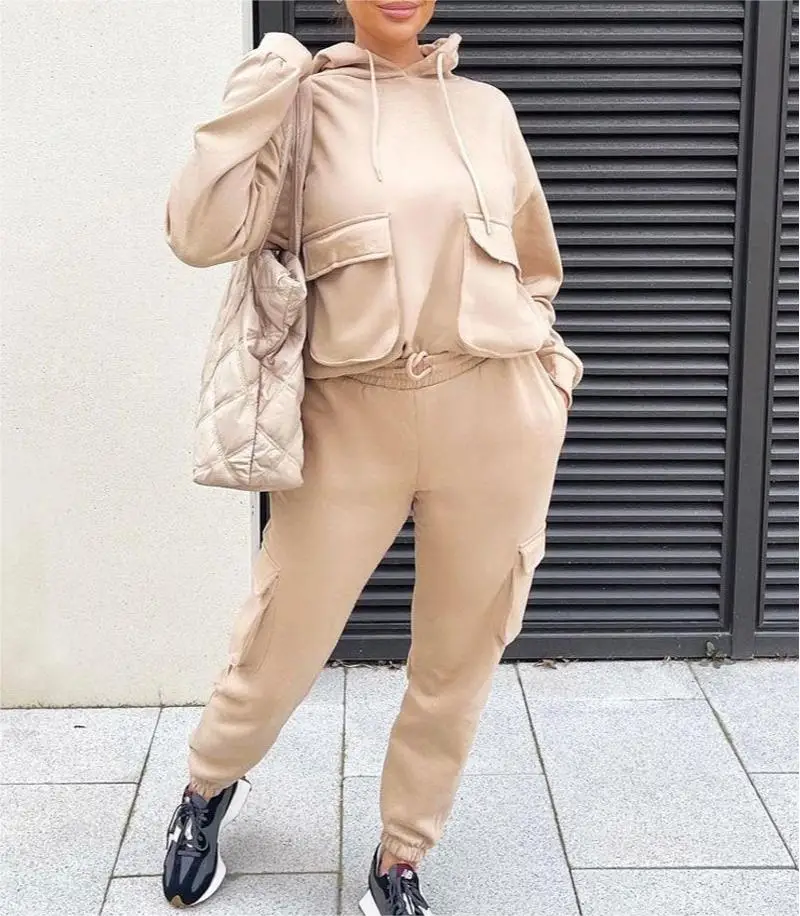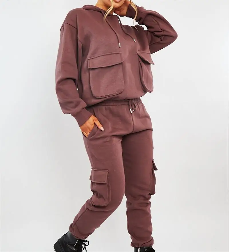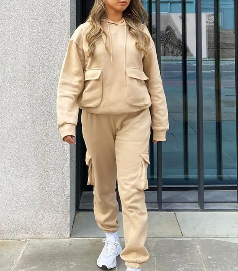 ADYABY Custom Fashion Solid Color Hoodie Cargo Pocket Sweatshirt Tracksuit Oversized Plus Size Jogger Hoodie Set