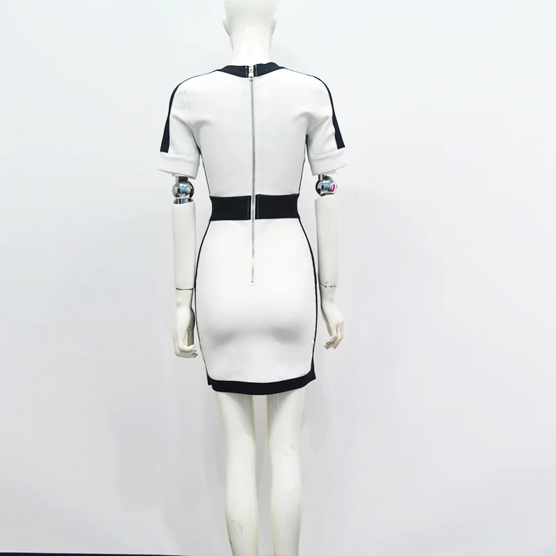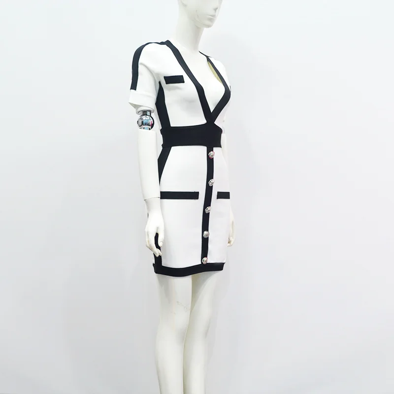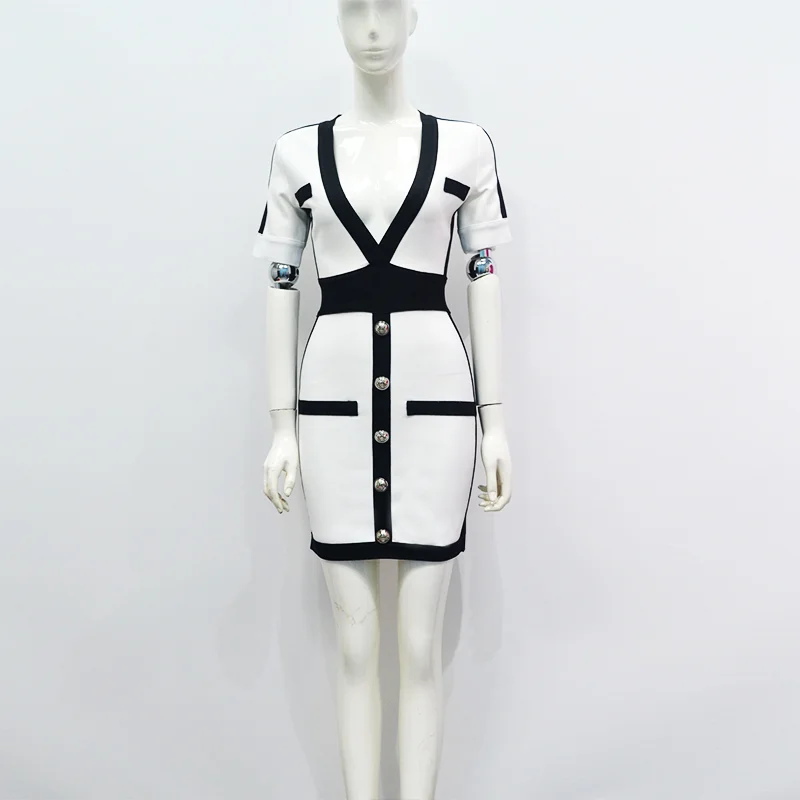 2026 Women's Sexy V-Neck Bandage Dress Short Sleeve Elegant Button Workwear Casual Fashion Mini Office Dress