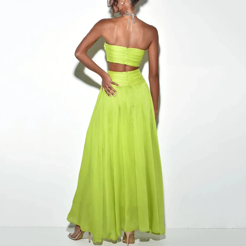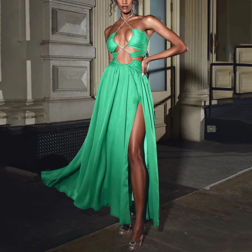 OEM/ODM Custom Satin Evening Dresses Sexy Hollow Design High Slit Prom Dress Women's Elegant Banquet Party Wear