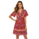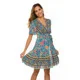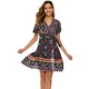 Bohemian Beach Knee-Length Rayon Viscose Ladies Fashion Flower Printed V-neck A-Line Summer Casual Dress