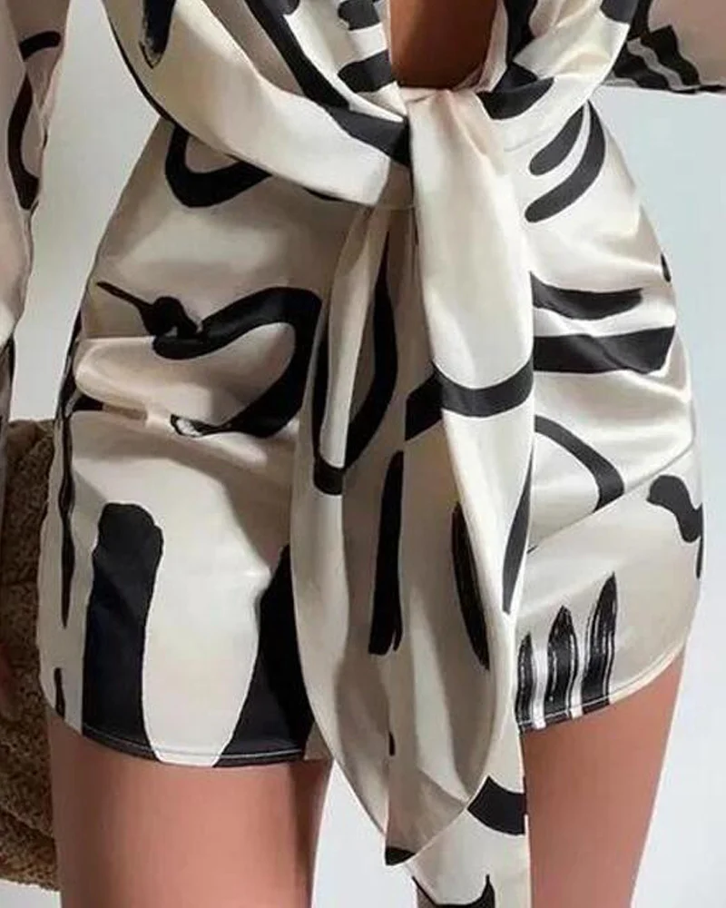 Women's Elegant Chic Trendy Satin Mini Casual Dresses Long Sleeve Printed Pattern Woven