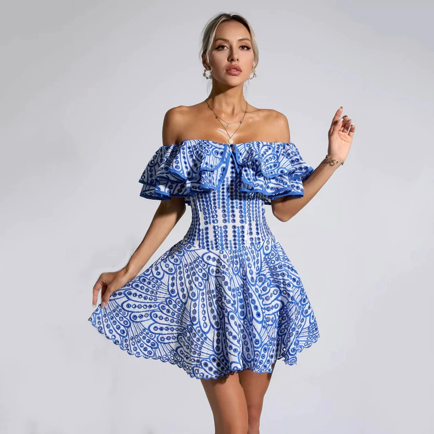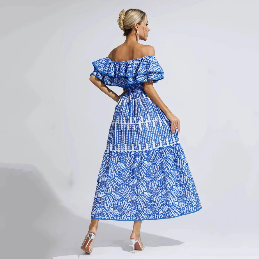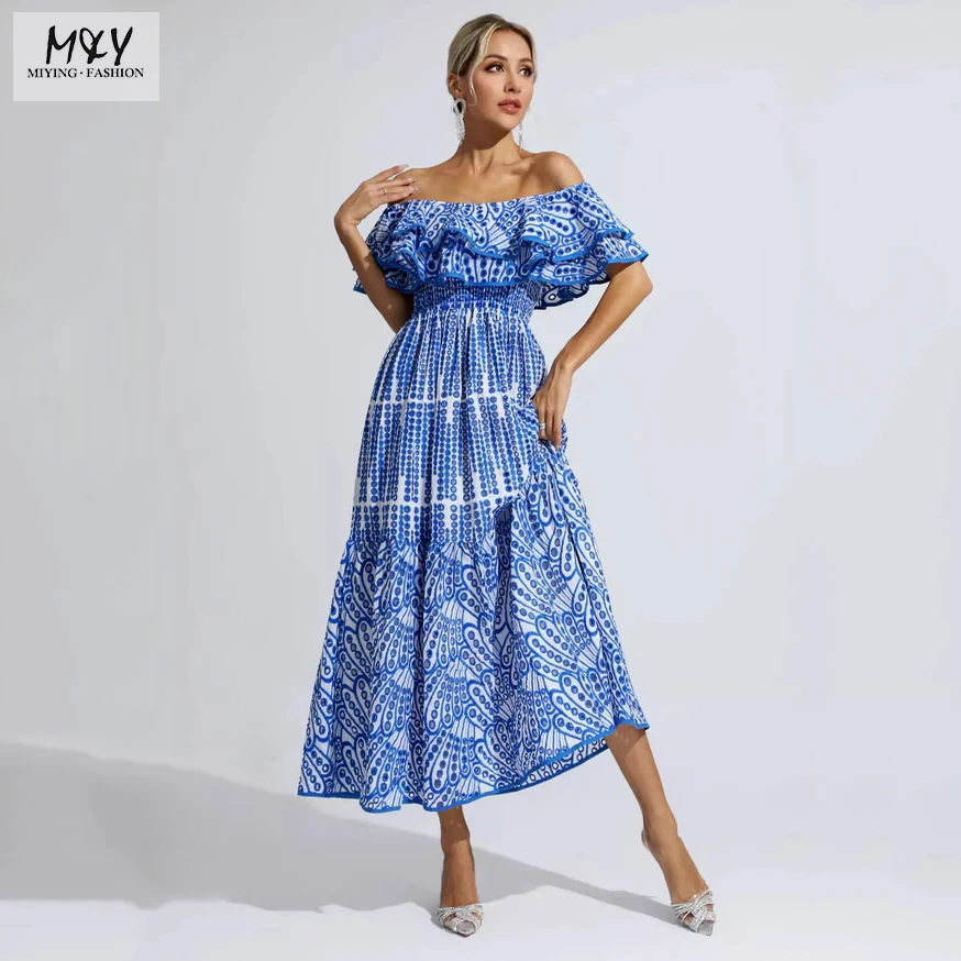 OEM Custom Logo Printing Ruffle Long Short Casual Dresses Fashion Elegant Daily Vacation Bohemian Women's Sleeveless Dress