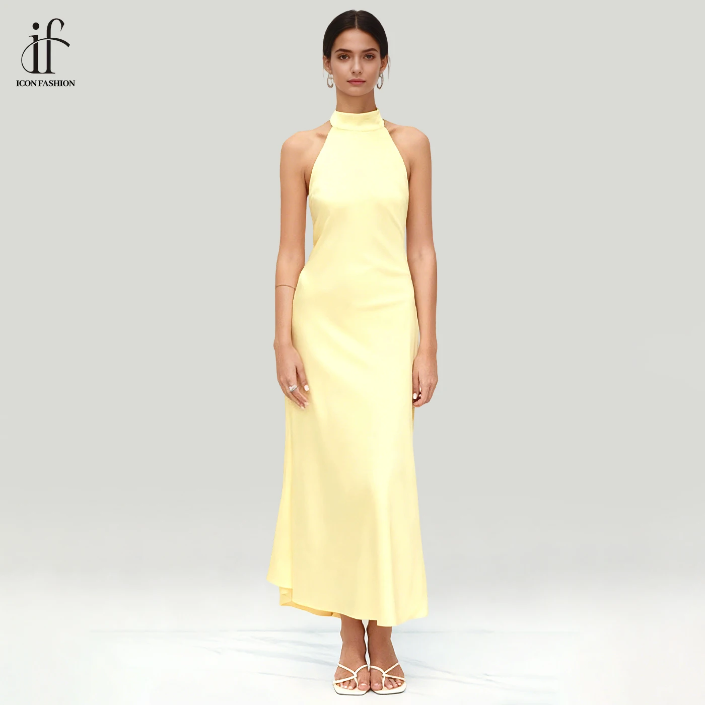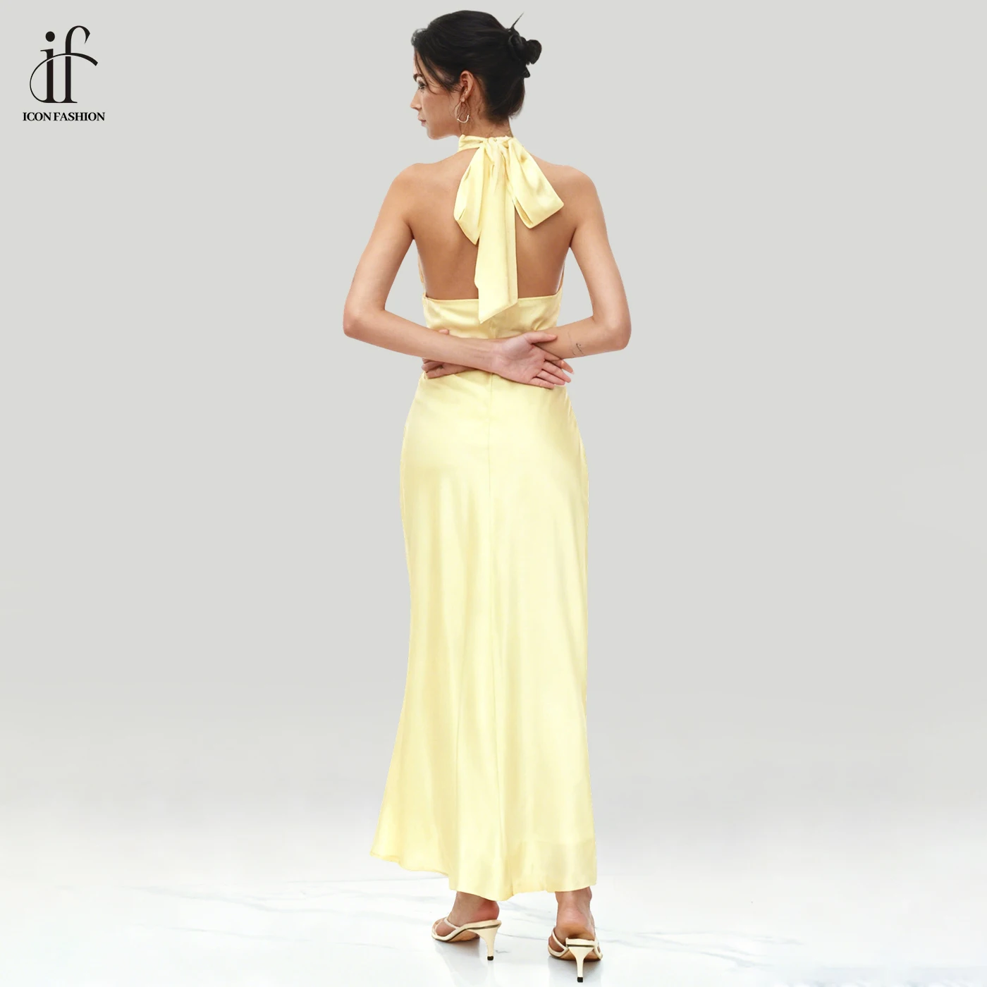 2026 Ladies Casual Backless Satin Maxi Dress Bodycon Halter Neck Dresses Elegant Party Modest Dress
