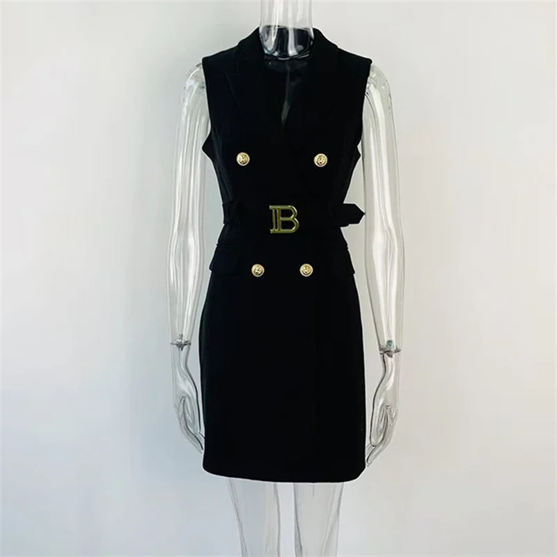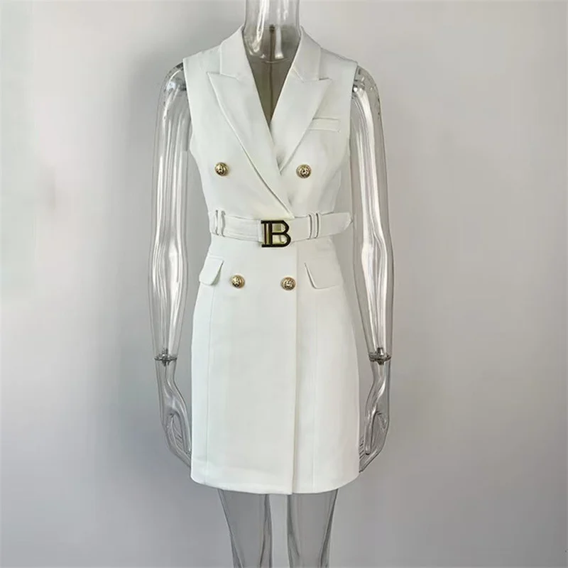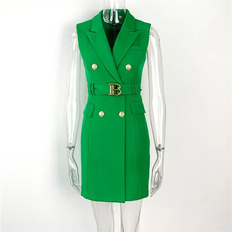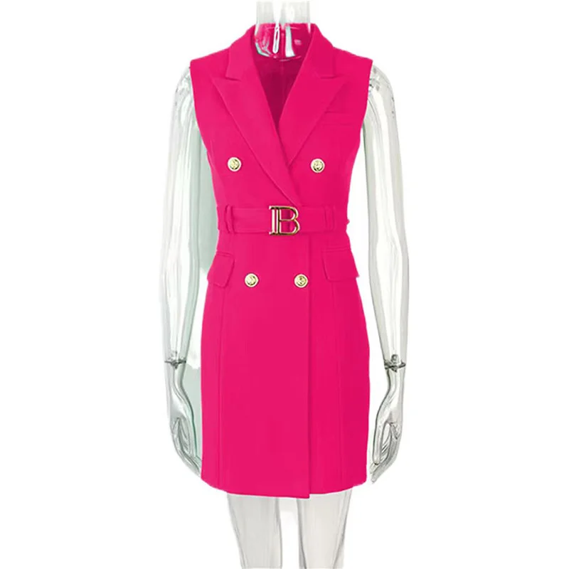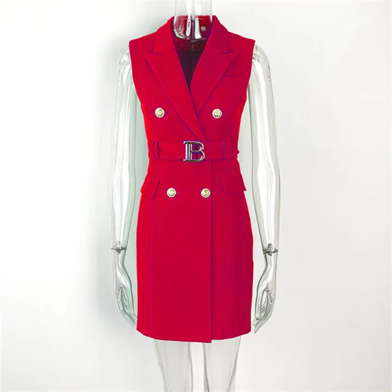 2026 New Sleeveless Bright Red Belted Suit Dress Slim Fit Versatile Elegant Vest for Women Lapel