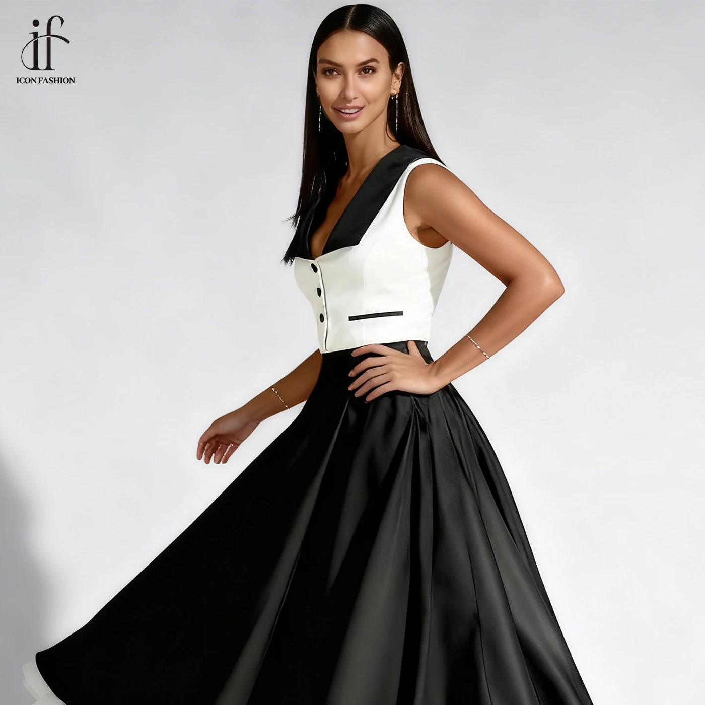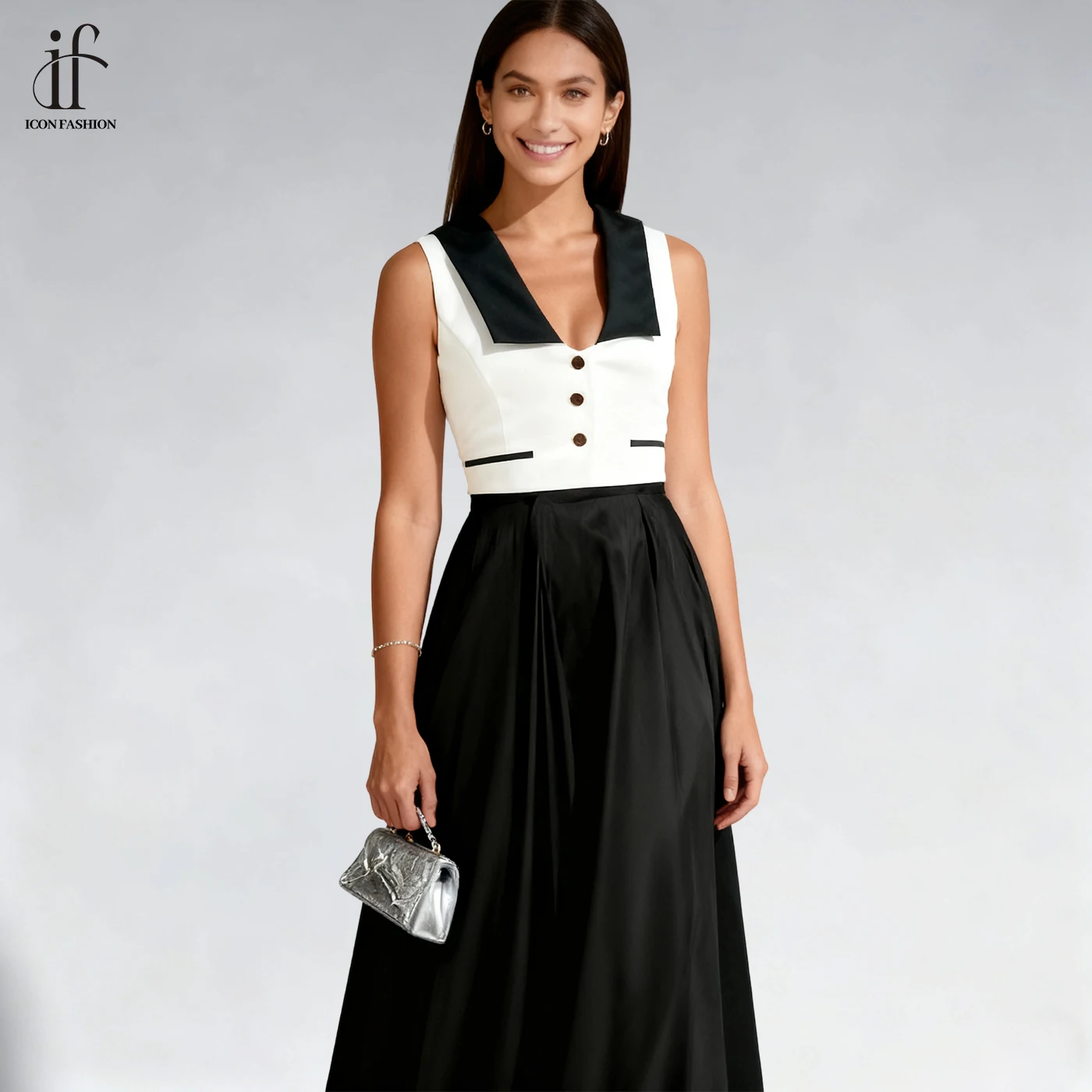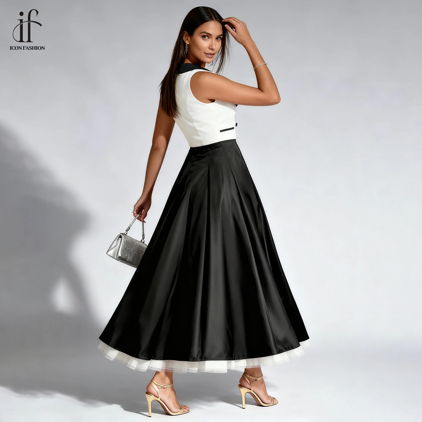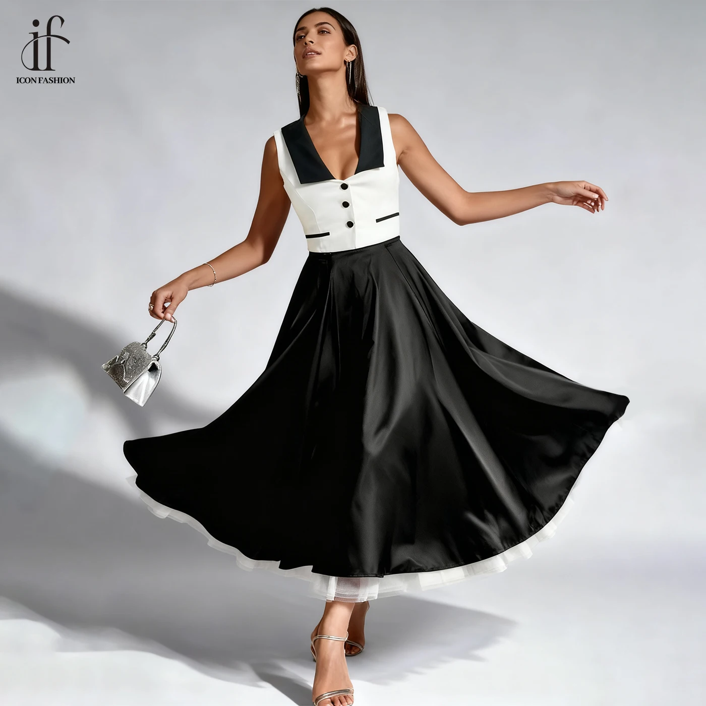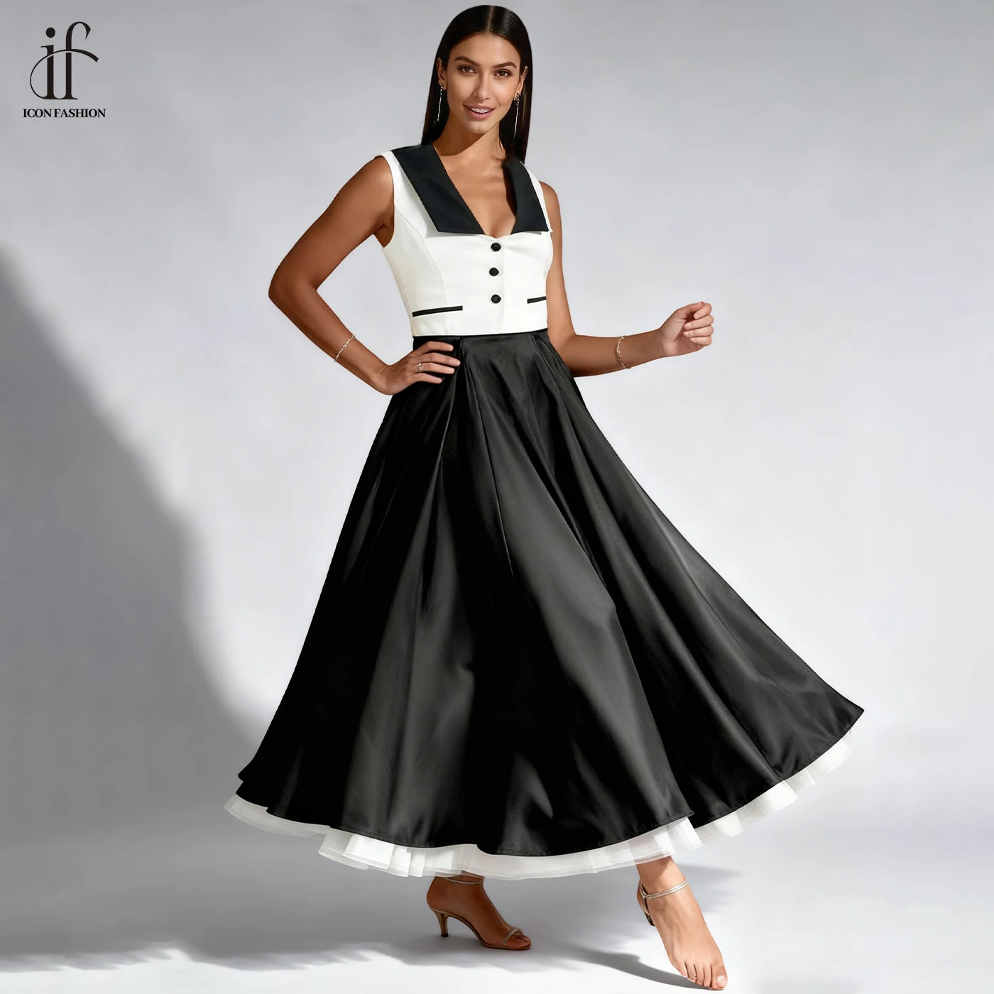2026 New Summer Black White Vintage Casual Dresses for Women Fashion Office Dress Temperament Formal Wear