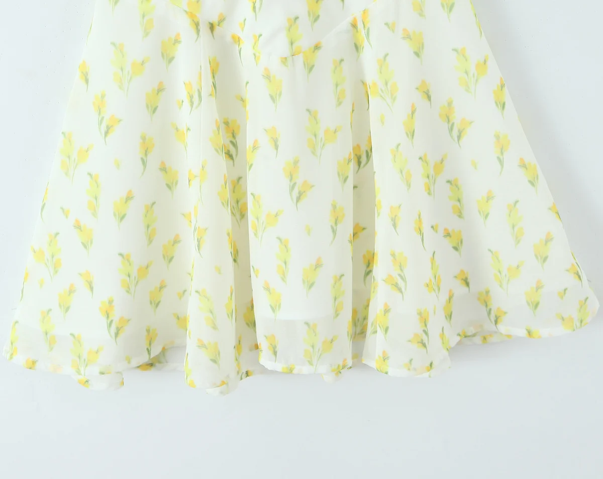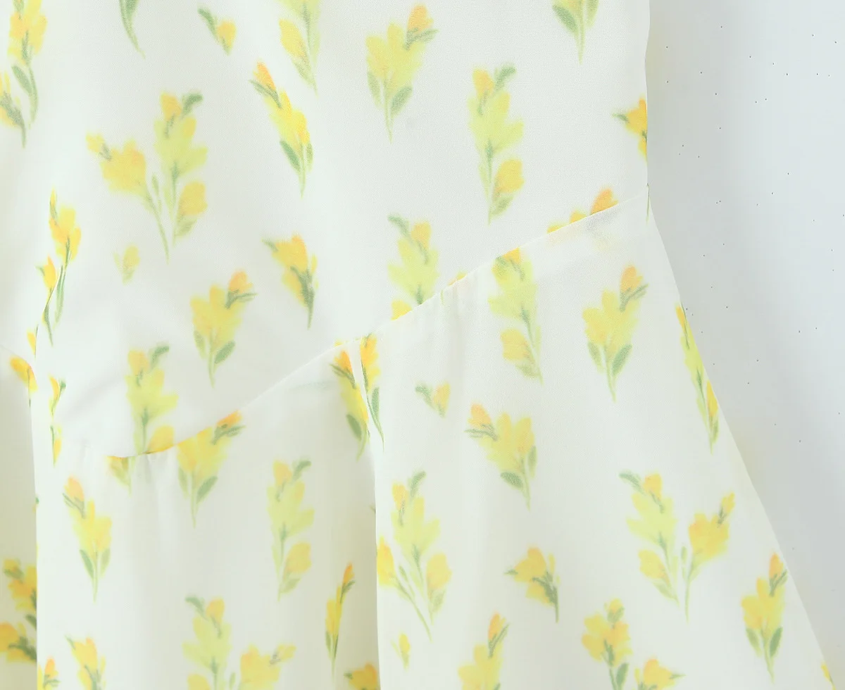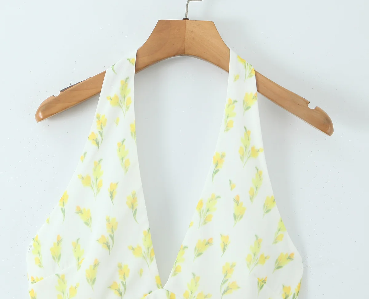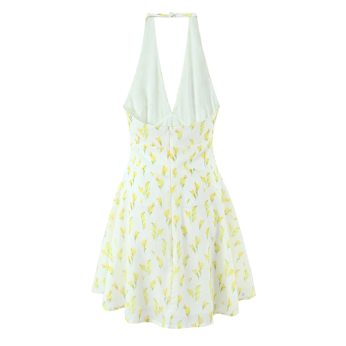 Hot Selling Breathable Woven Back Hollow Out White Color Floral Print Sleeveless Mini Halter Dress for Women