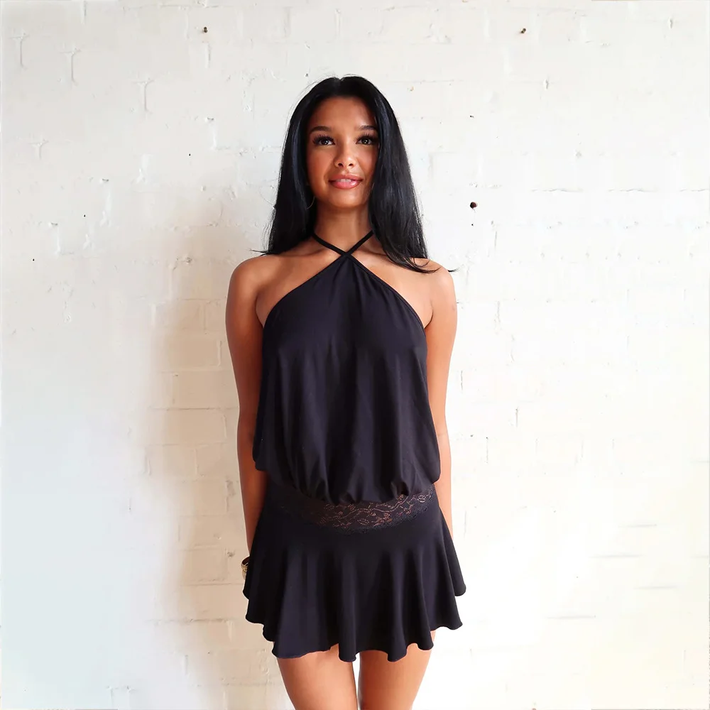 Casual Slim Halter Sleeveless Solid Pleated Backless Mini Women Sexy Sweet Plain Dyed Summer Dress