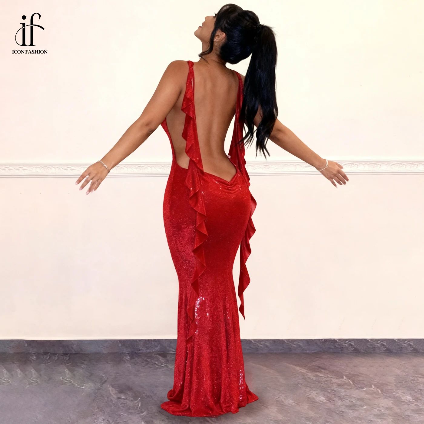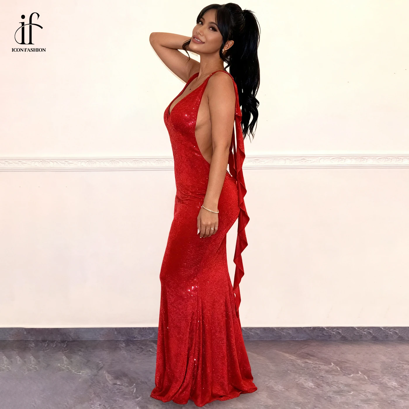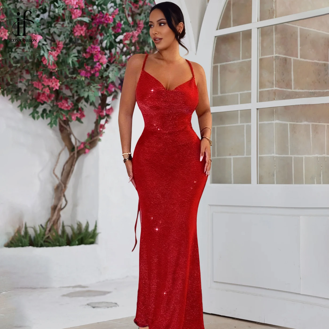 2026 ADYABY Red Sequin Bodycon Dress Women's Sexy Backless Camisole Dress Prom Wedding Party Evening Gown