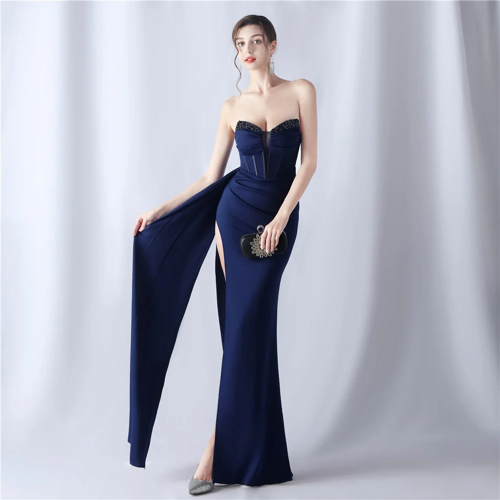 ZYHT 73902 Dark Green Blue Long Sleeve Simple Elegant Evening Dress Customize High End Women Clothing Manufacturer